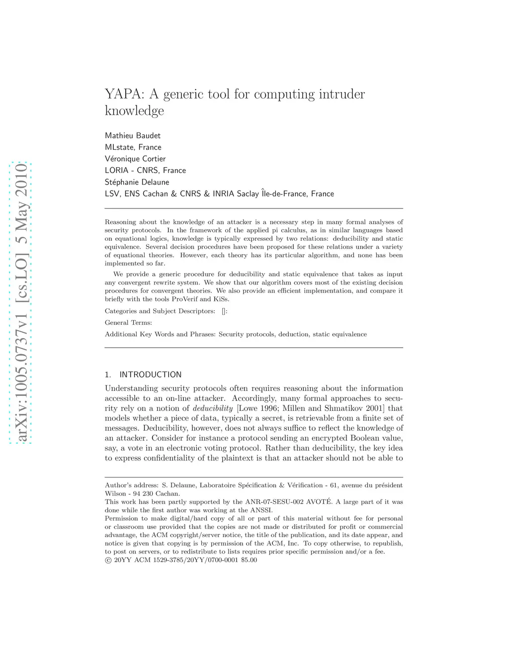 YAPA: A generic tool for computing intruder knowledge