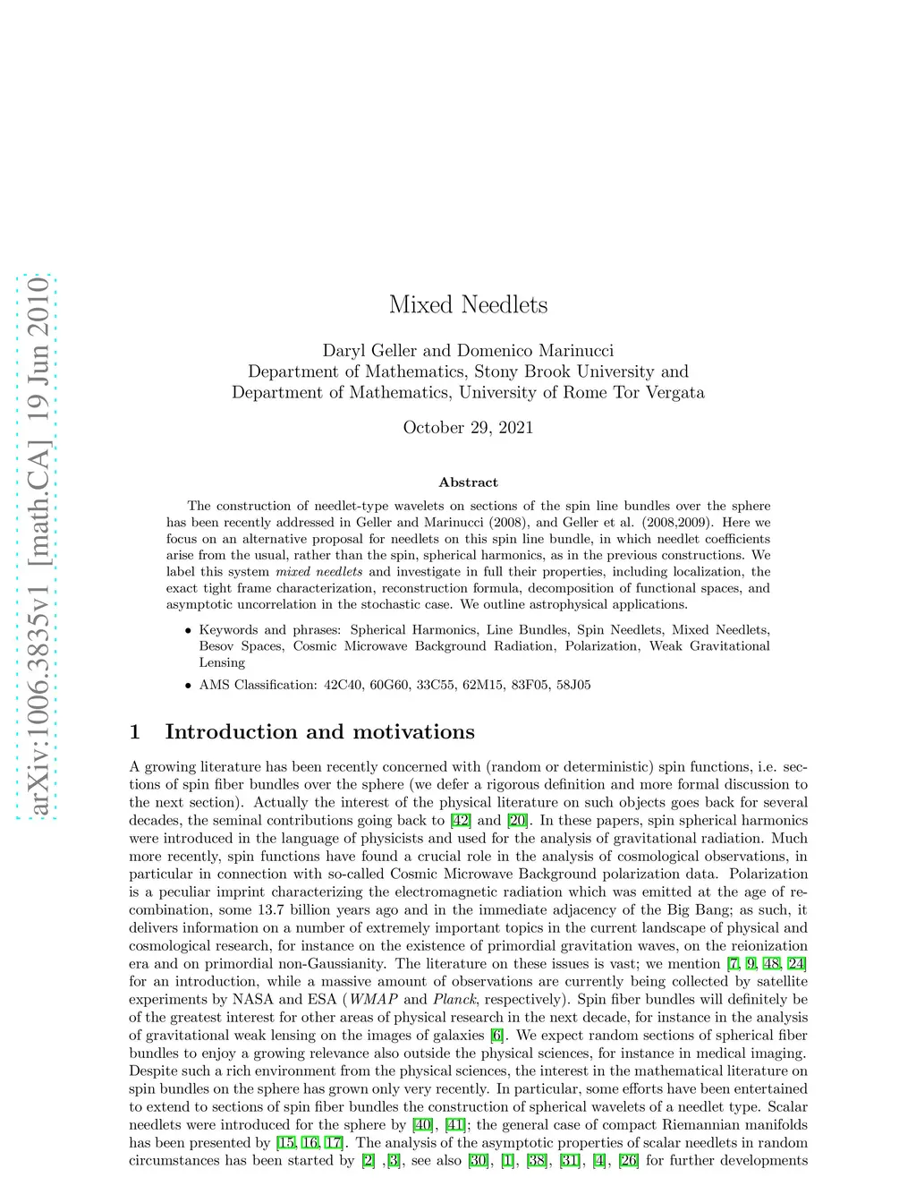 The construction of needlet-type wavelets on sections of the spin line bundles over the sphere has been recently addressed in Geller and Marinucci (2008), and Geller et al. (2008,2009). Here we focus on an alternative proposal for needlets on this spin line bundle, in which needlet coefficients arise from the usual, rather than the spin, spherical harmonics, as in the previous constructions. We label this system mixed needlets and investigate in full their properties, including localization, the exact tight frame characterization, reconstruction formula, decomposition of functional spaces, and asymptotic uncorrelation in the stochastic case. We outline astrophysical applications.
