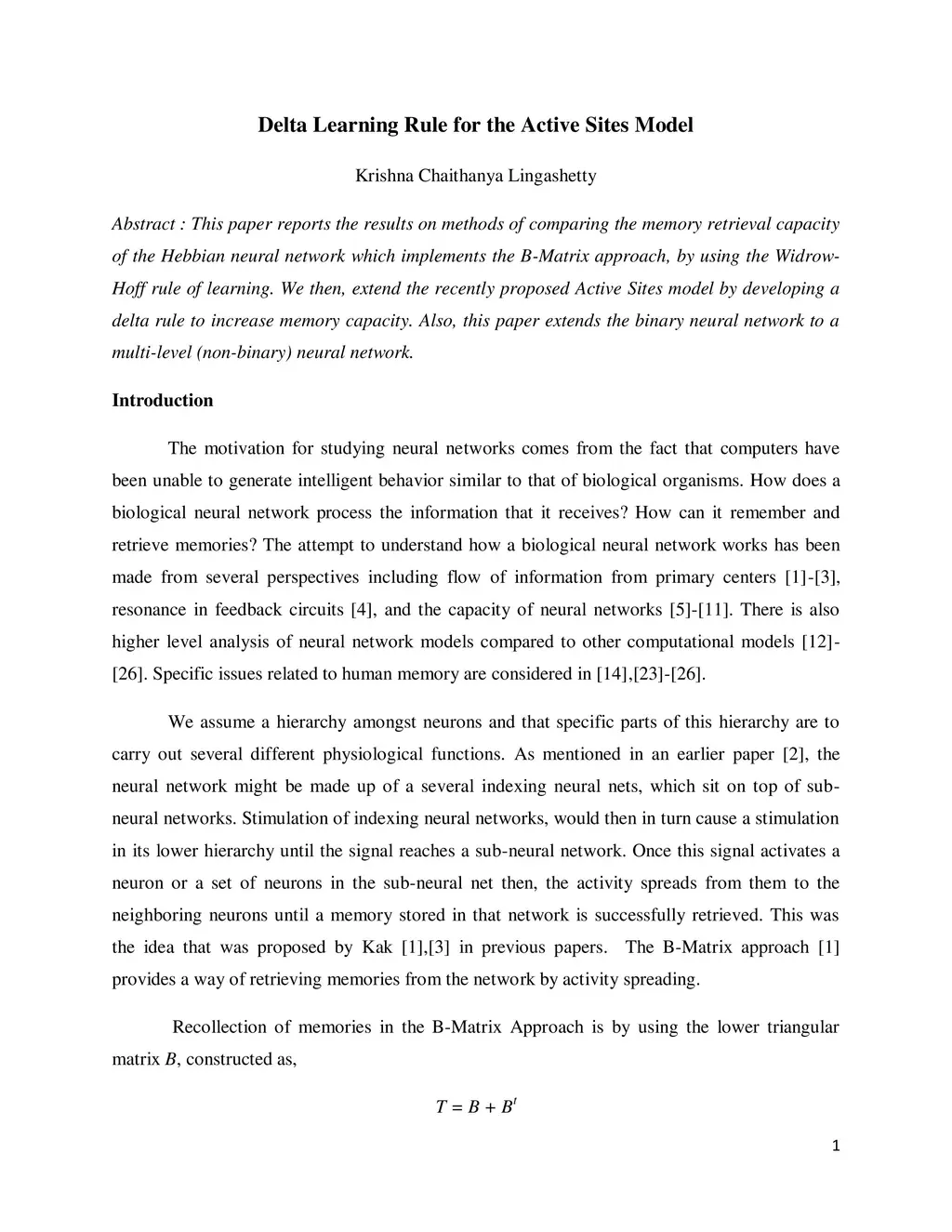 This paper reports the results on methods of comparing the memory retrieval capacity of the Hebbian neural network which implements the B-Matrix approach, by using the Widrow-Hoff rule of learning. We then, extend the recently proposed Active Sites model by developing a delta rule to increase memory capacity. Also, this paper extends the binary neural network to a multi-level (non-binary) neural network.