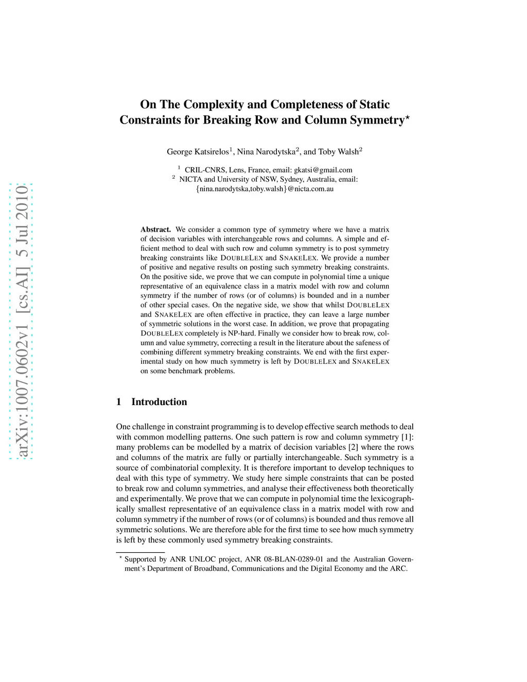 On The Complexity and Completeness of Static Constraints for Breaking
