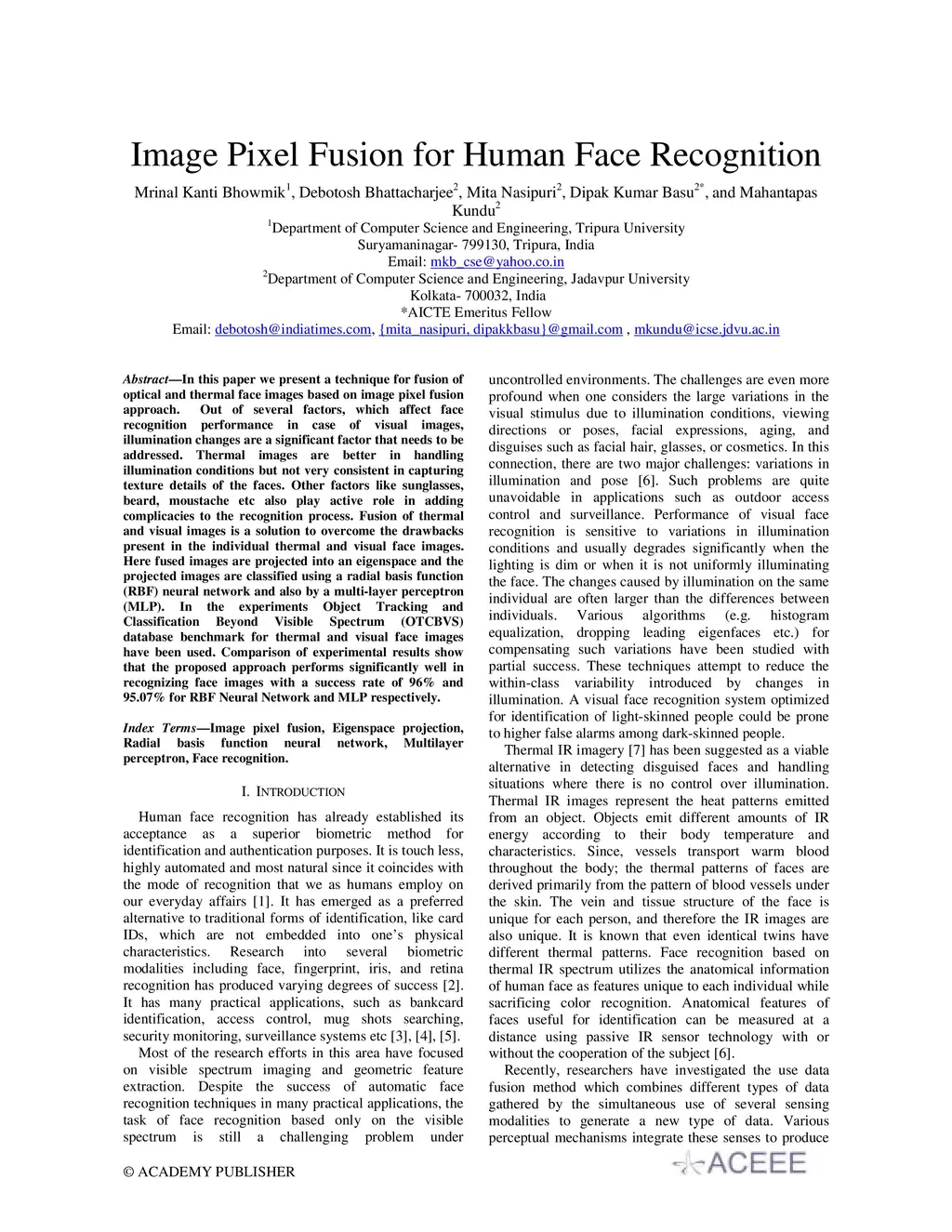 Image Pixel Fusion for Human Face Recognition