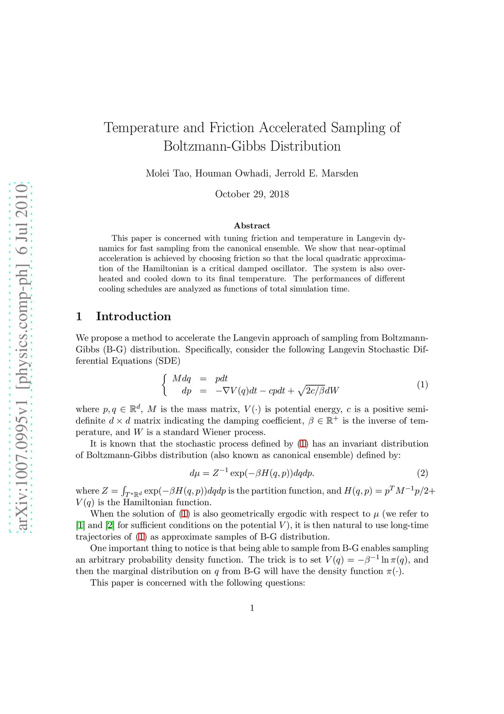 Temperature and Friction Accelerated Sampling of Boltzmann-Gibbs