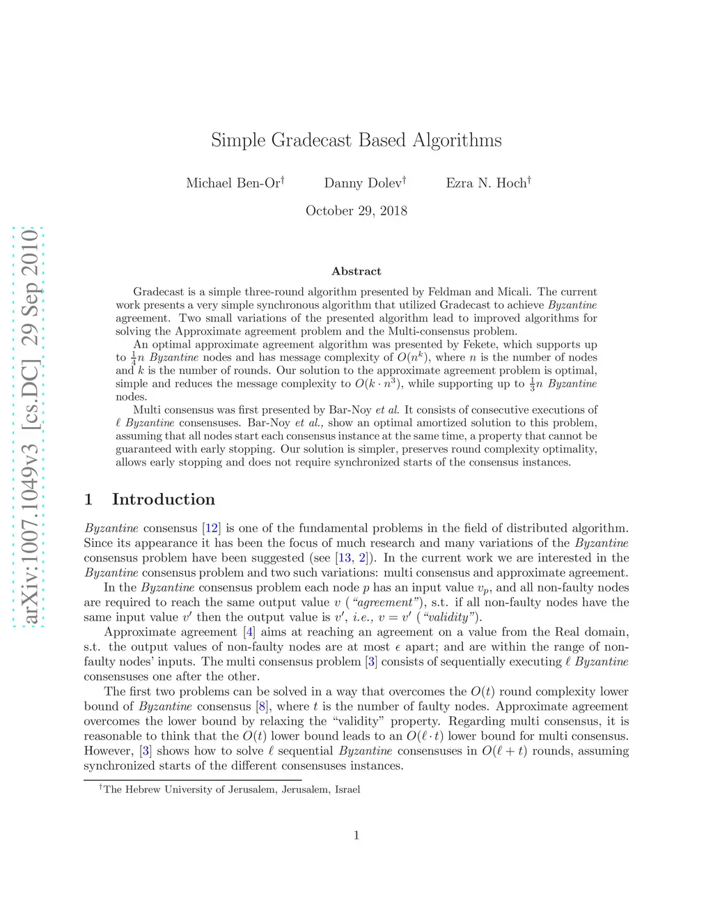 Gradecast is a simple three-round algorithm presented by Feldman and Micali. The current work presents a very simple algorithm that utilized Gradecast to achieve Byzantine agreement. Two small variations of the presented algorithm lead to improved algorithms for solving the Approximate agreement problem and the Multi-consensus problem. An optimal approximate agreement algorithm was presented by Fekete, which supports up to 1/4 n Byzantine nodes and has message complexity of O(n^k), where n is the number of nodes and k is the number of rounds. Our solution to the approximate agreement problem is optimal, simple and reduces the message complexity to O(k * n^3), while supporting up to 1/3 n Byzantine nodes. Multi consensus was first presented by Bar-Noy et al. It consists of consecutive executions of l Byzantine consensuses. Bar-Noy et al., show an optimal amortized solution to this problem, assuming that all nodes start each consensus instance at the same time, a property that cannot be guaranteed with early stopping. Our solution is simpler, preserves round complexity optimality, allows early stopping and does not require synchronized starts of the consensus instances.