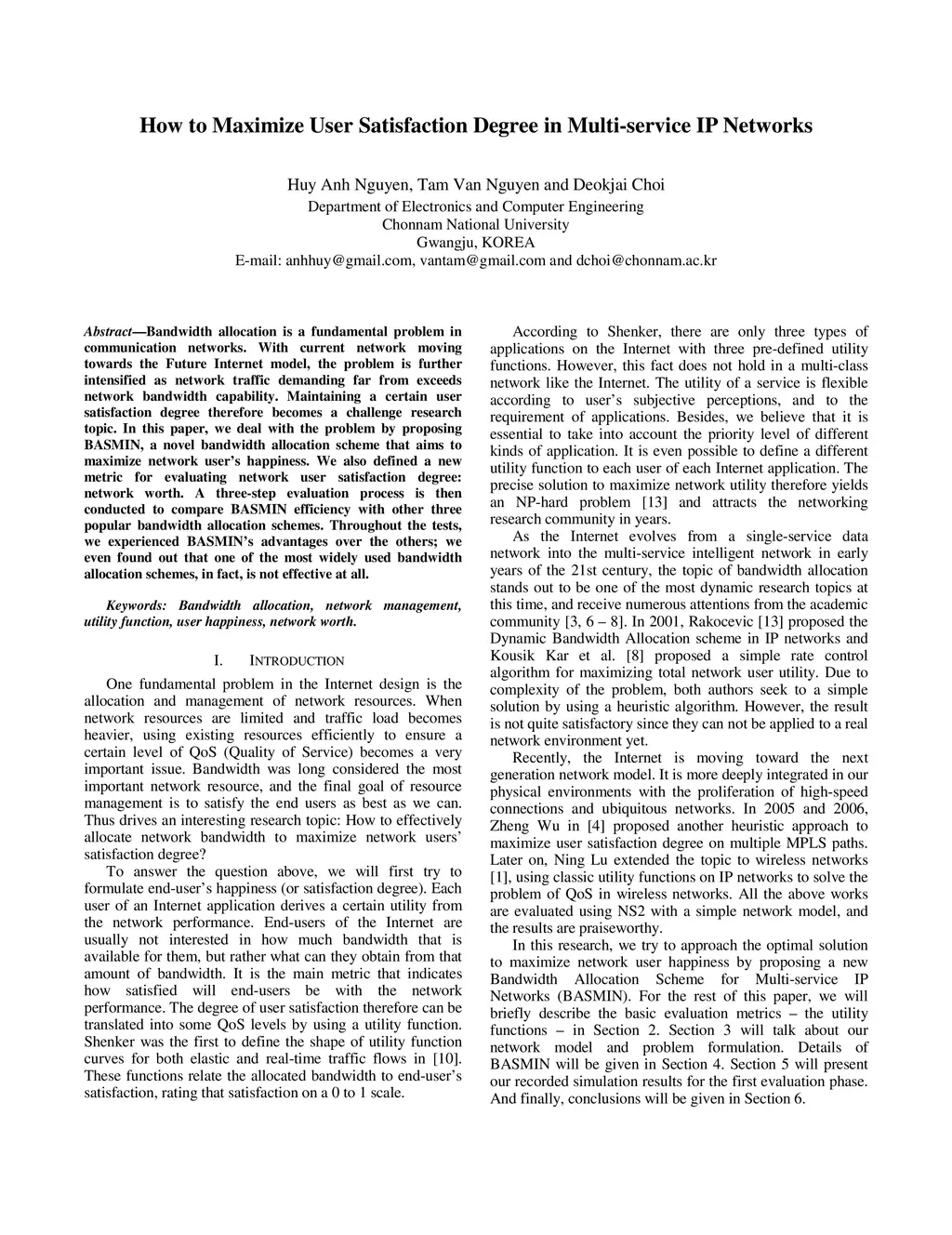 Bandwidth allocation is a fundamental problem in communication networks. With current network moving towards the Future Internet model, the problem is further intensified as network traffic demanding far from exceeds network bandwidth capability. Maintaining a certain user satisfaction degree therefore becomes a challenge research topic. In this paper, we deal with the problem by proposing BASMIN, a novel bandwidth allocation scheme that aims to maximize network user's happiness. We also defined a new metric for evaluating network user satisfaction degree: network worth. A three-step evaluation process is then conducted to compare BASMIN efficiency with other three popular bandwidth allocation schemes. Throughout the tests, we experienced BASMIN's advantages over the others; we even found out that one of the most widely used bandwidth allocation schemes, in fact, is not effective at all.