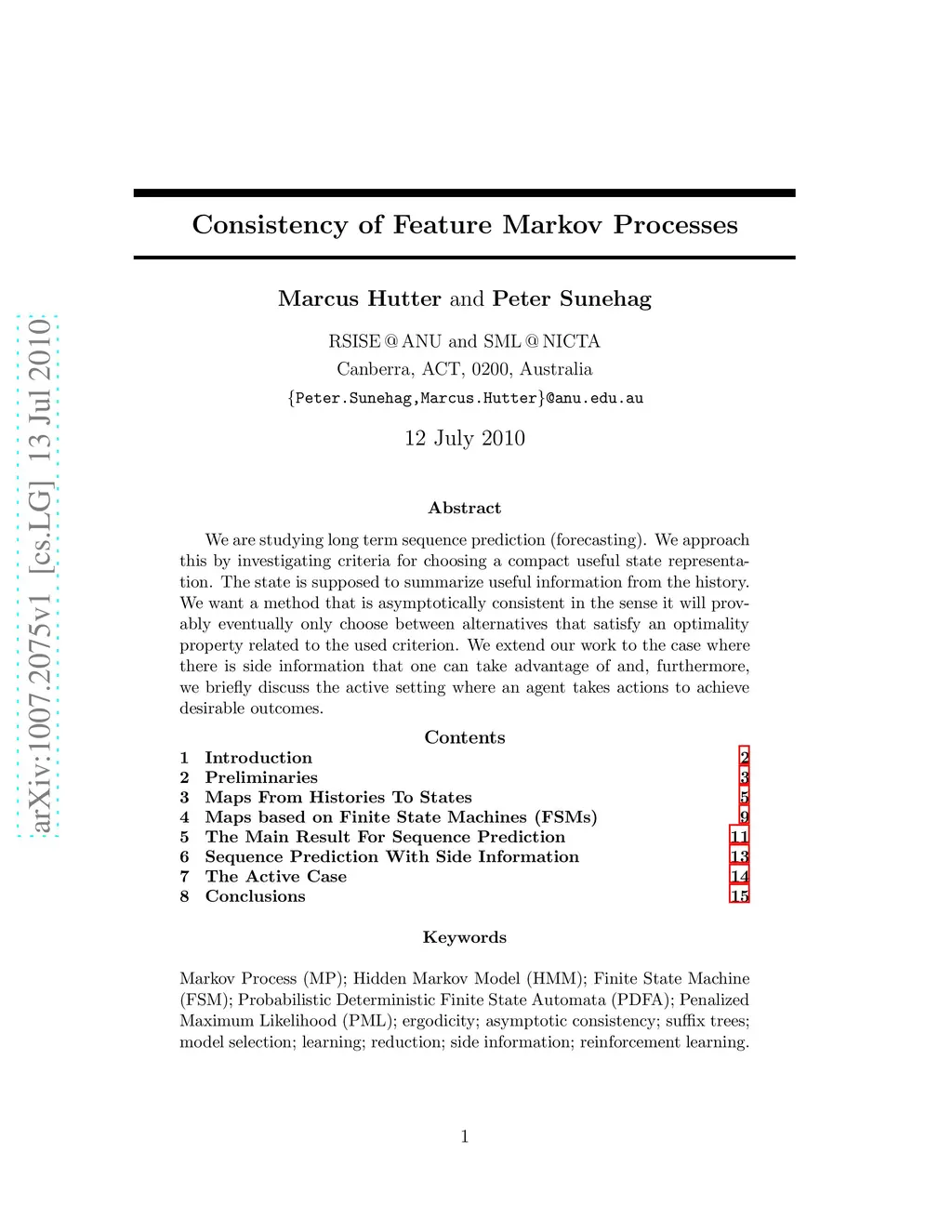Consistency of Feature Markov Processes