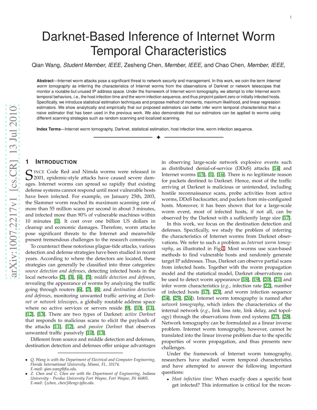 Darknet-Based Inference of Internet Worm Temporal Characteristics