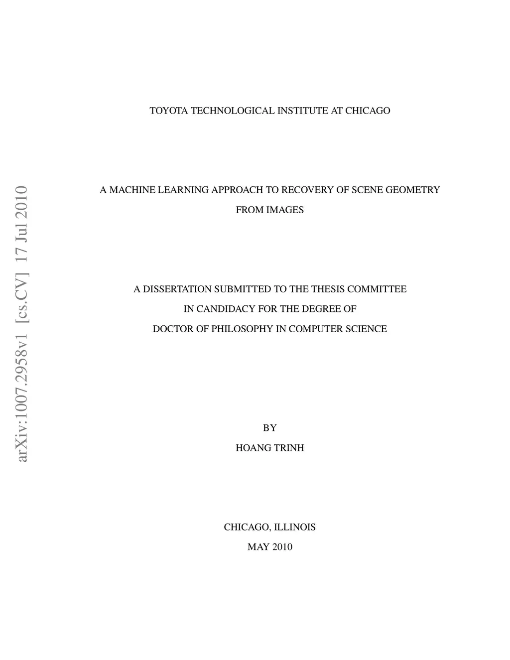 A Machine Learning Approach to Recovery of Scene Geometry from Images