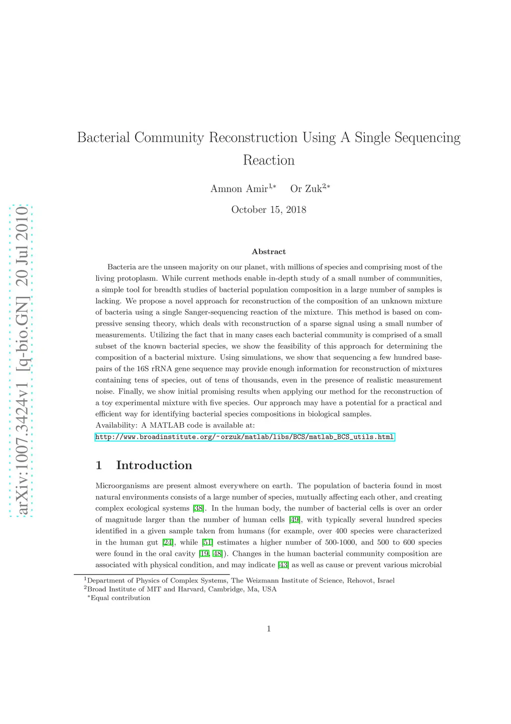 Bacterial Community Reconstruction Using A Single Sequencing Reaction