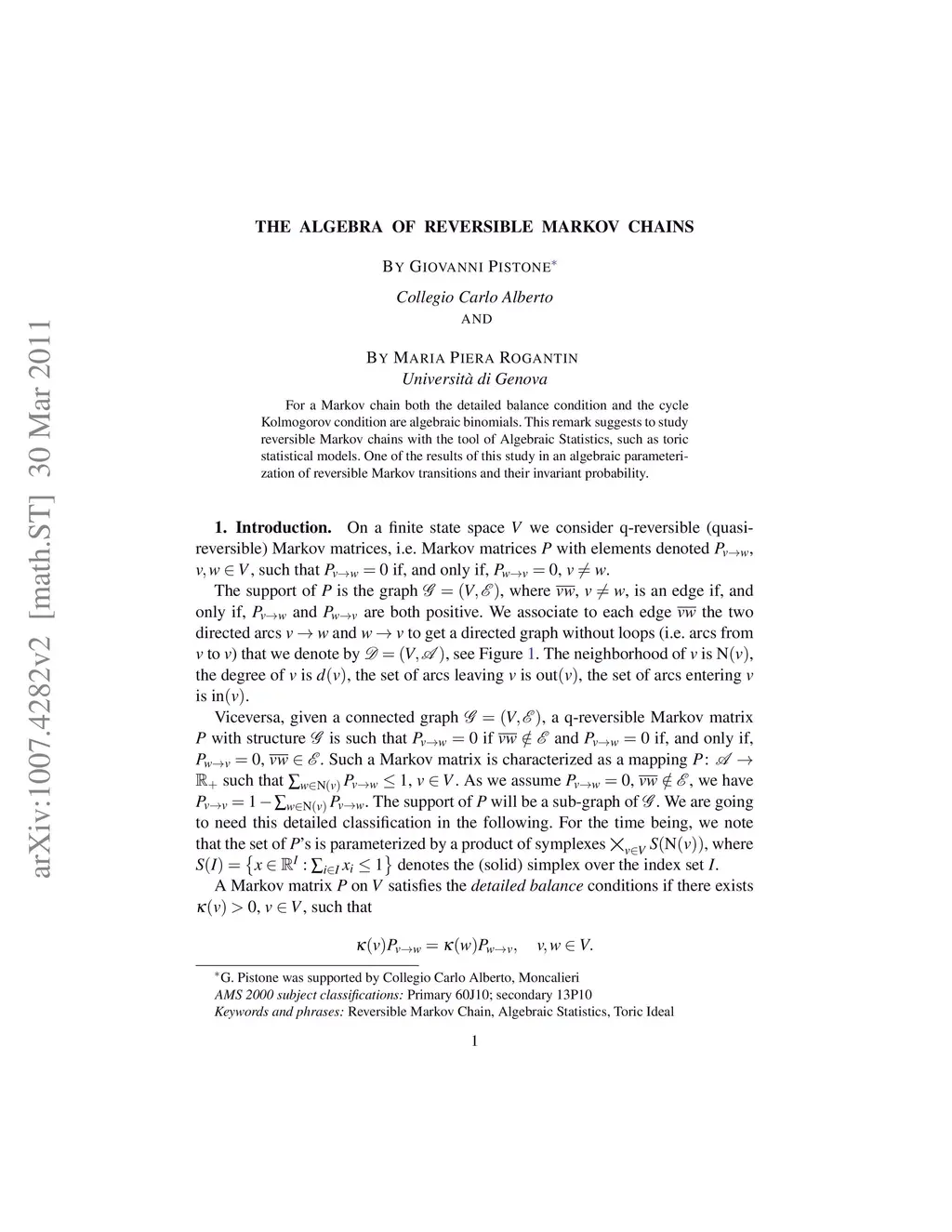 Algebra of Reversible Markov Chains