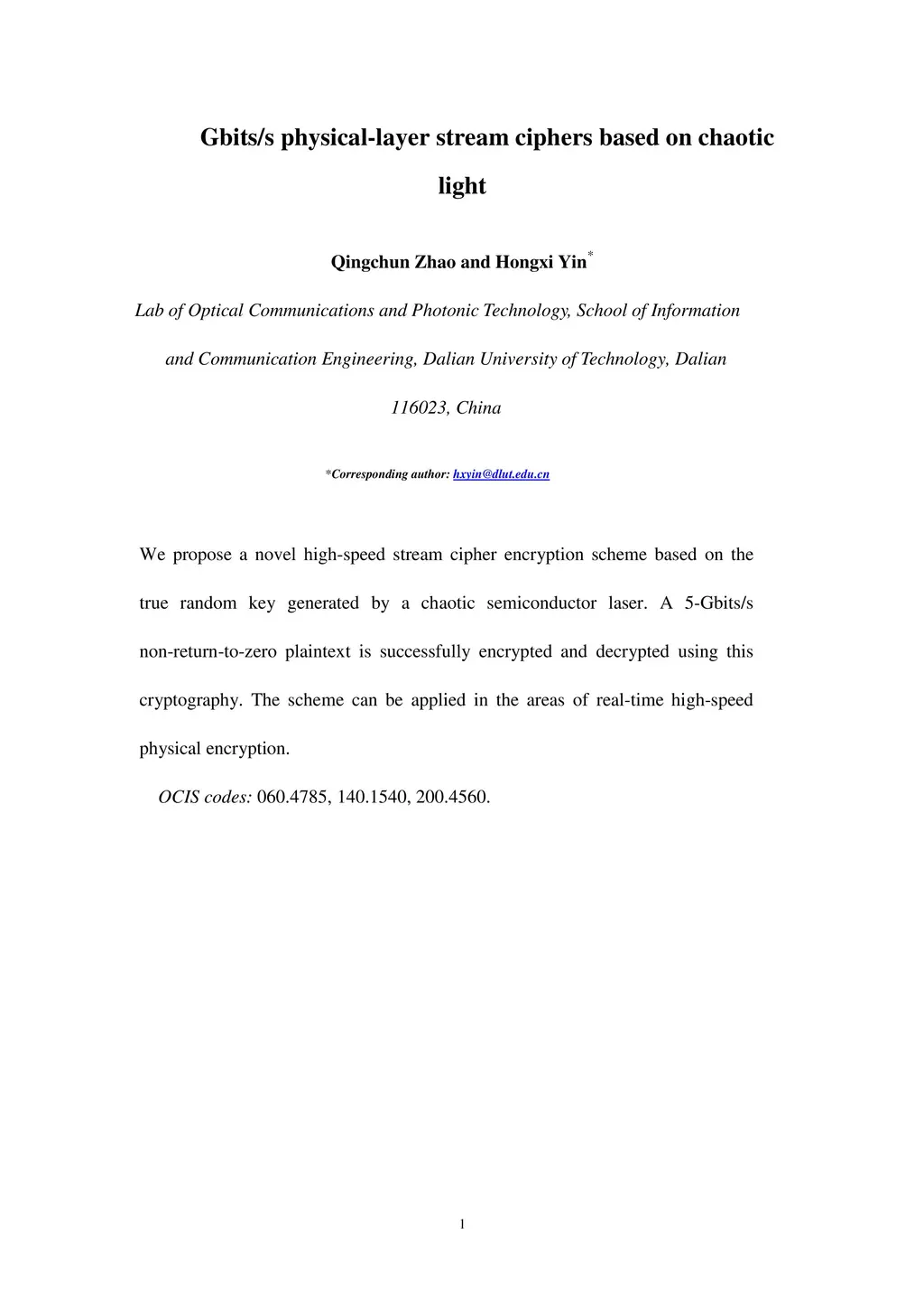 Gbits/s physical-layer stream ciphers based on chaotic light