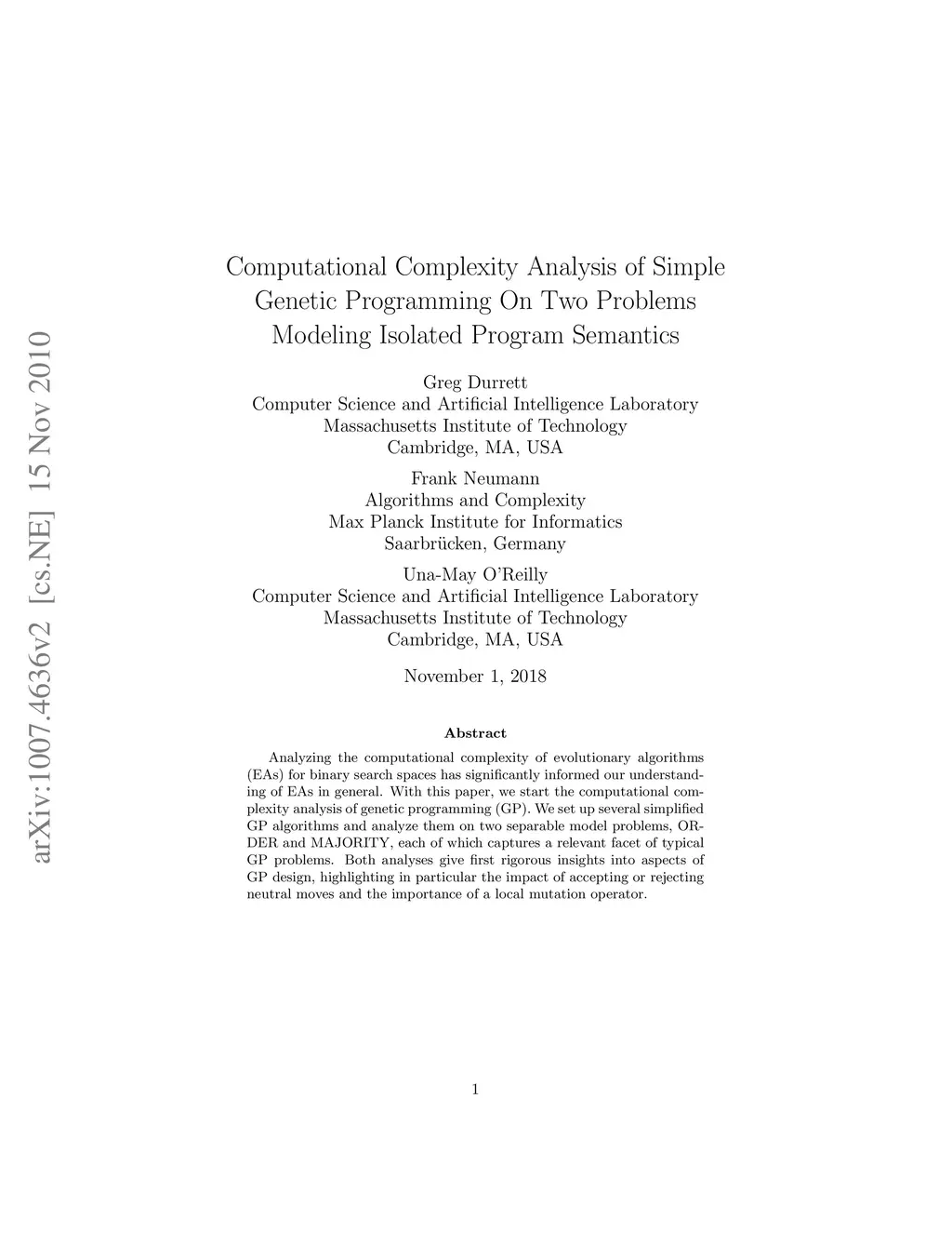 Computational Complexity Analysis of Simple Genetic Programming On Two