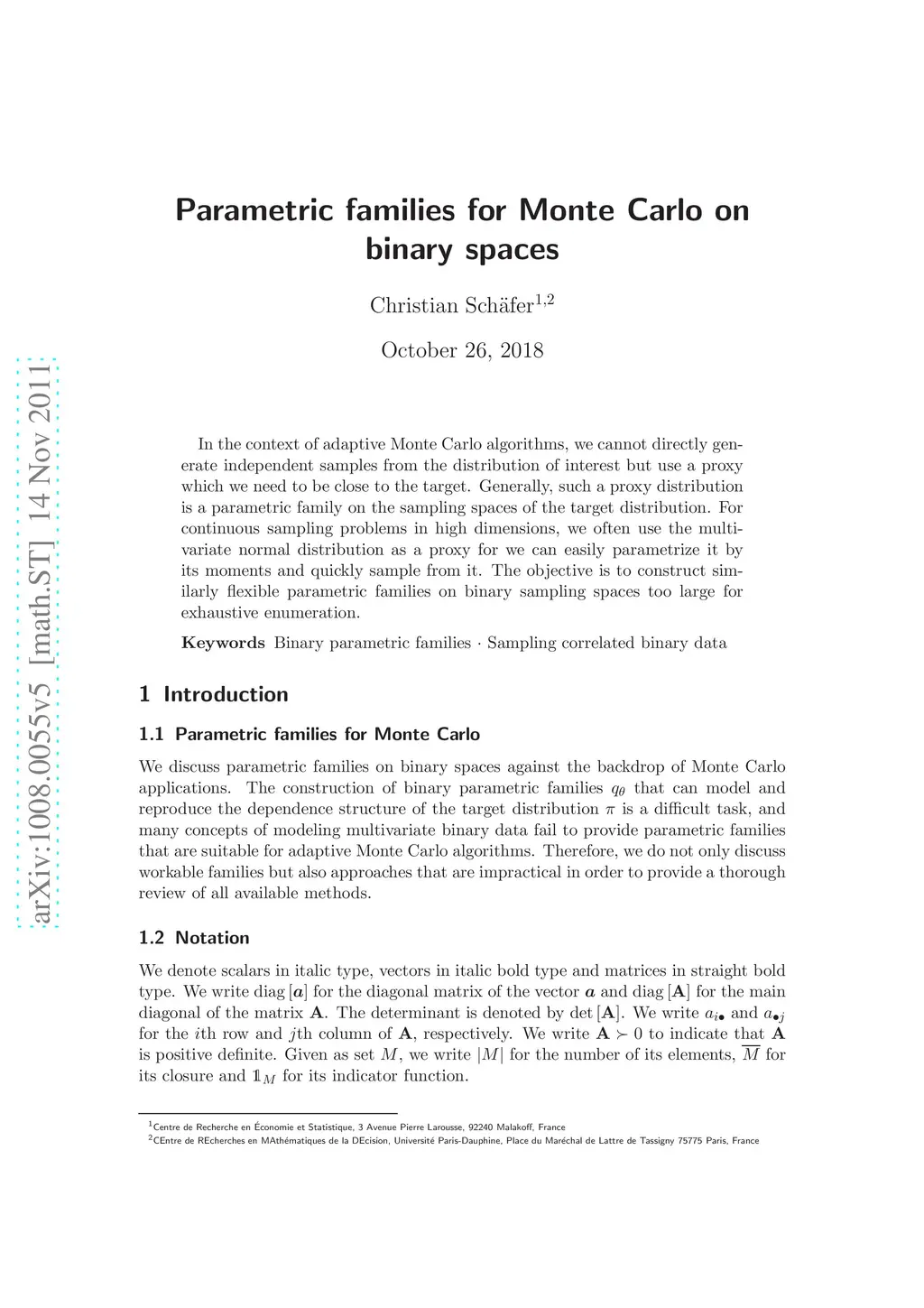 In the context of adaptive Monte Carlo algorithms, we cannot directly generate independent samples from the distribution of interest but use a proxy which we need to be close to the target. Generally, such a proxy distribution is a parametric family on the sampling spaces of the target distribution. For continuous sampling problems in high dimensions, we often use the multivariate normal distribution as a proxy for we can easily parametrise it by its moments and quickly sample from it. Our objective is to construct similarly flexible parametric families on binary sampling spaces too large for exhaustive enumeration. The binary sampling problem is more difficult than its continuous counterpart since the choice of a suitable proxy distribution is not obvious.