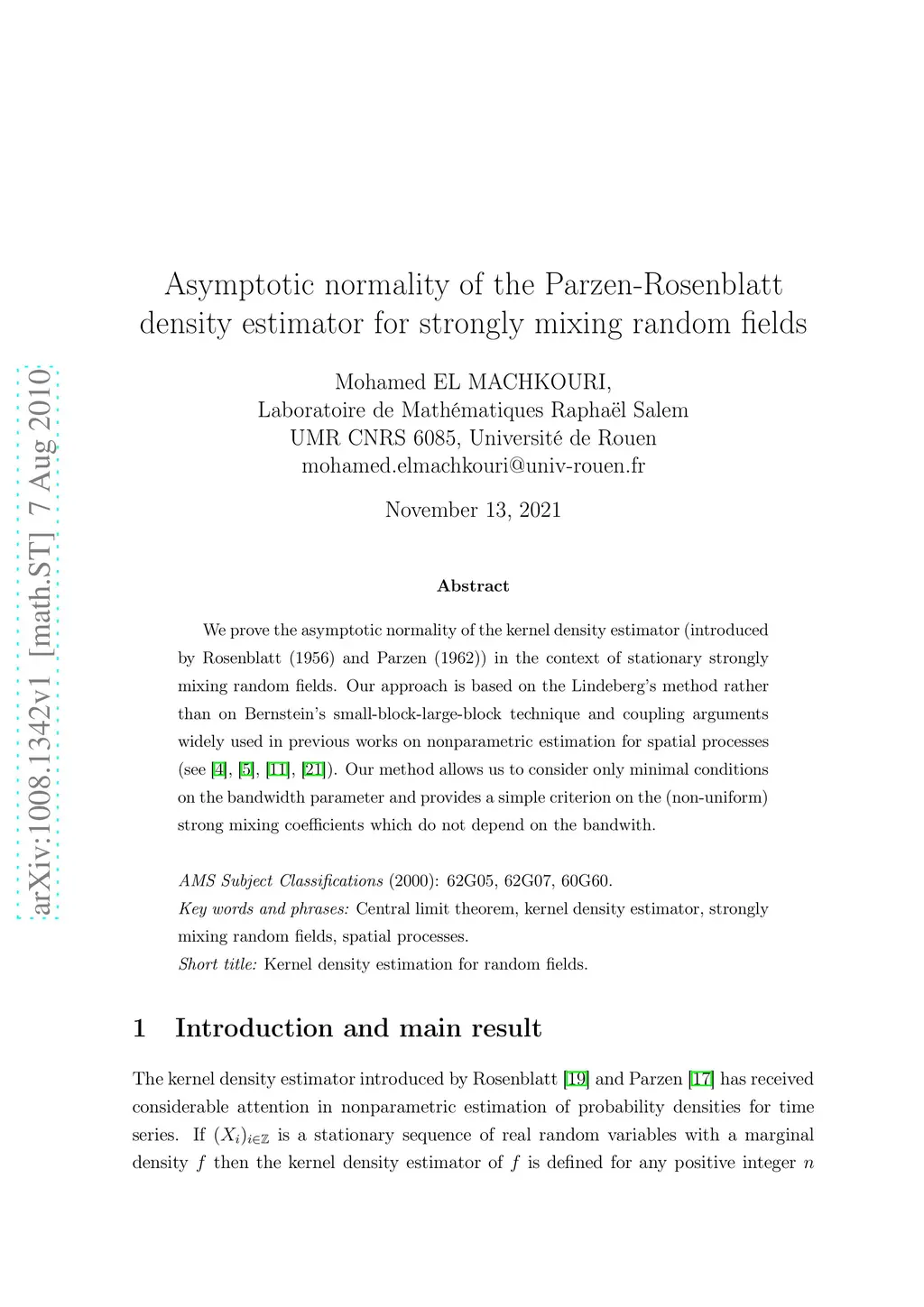 Asymptotic normality of the Parzen-Rosenblatt density estimator for