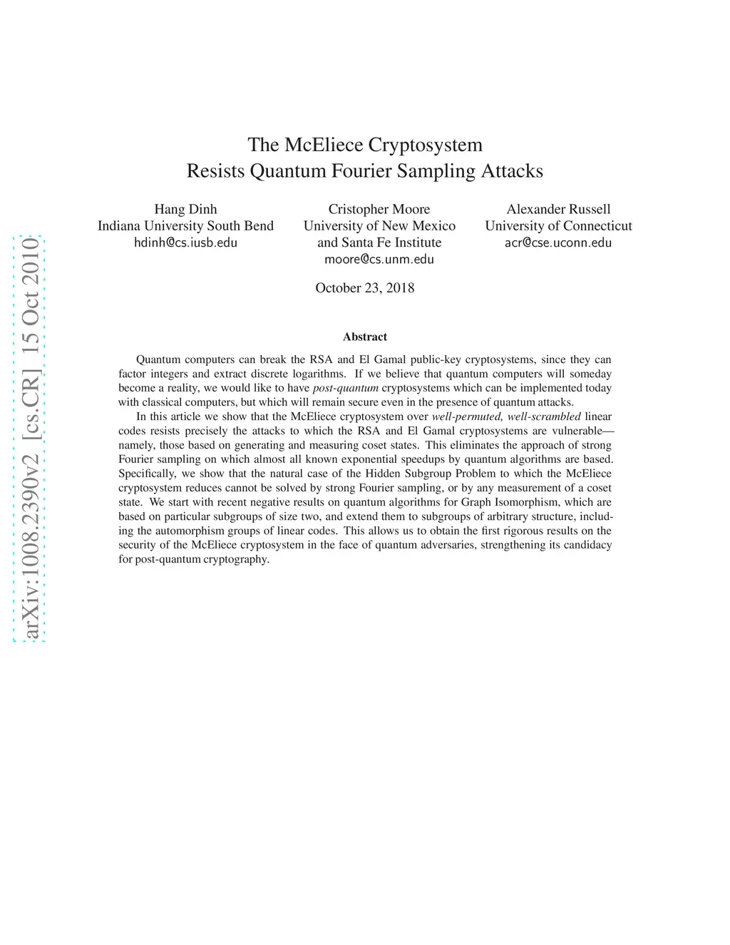 Quantum computers can break the RSA and El Gamal public-key cryptosystems, since they can factor integers and extract discrete logarithms. If we believe that quantum computers will someday become a reality, we would like to have \emph{post-quantum} cryptosystems which can be implemented today with classical computers, but which will remain secure even in the presence of quantum attacks. In this article we show that the McEliece cryptosystem over \emph{well-permuted, well-scrambled} linear codes resists precisely the attacks to which the RSA and El Gamal cryptosystems are vulnerable---namely, those based on generating and measuring coset states. This eliminates the approach of strong Fourier sampling on which almost all known exponential speedups by quantum algorithms are based. Specifically, we show that the natural case of the Hidden Subgroup Problem to which the McEliece cryptosystem reduces cannot be solved by strong Fourier sampling, or by any measurement of a coset state. We start with recent negative results on quantum algorithms for Graph Isomorphism, which are based on particular subgroups of size two, and extend them to subgroups of arbitrary structure, including the automorphism groups of linear codes. This allows us to obtain the first rigorous results on the security of the McEliece cryptosystem in the face of quantum adversaries, strengthening its candidacy for post-quantum cryptography.