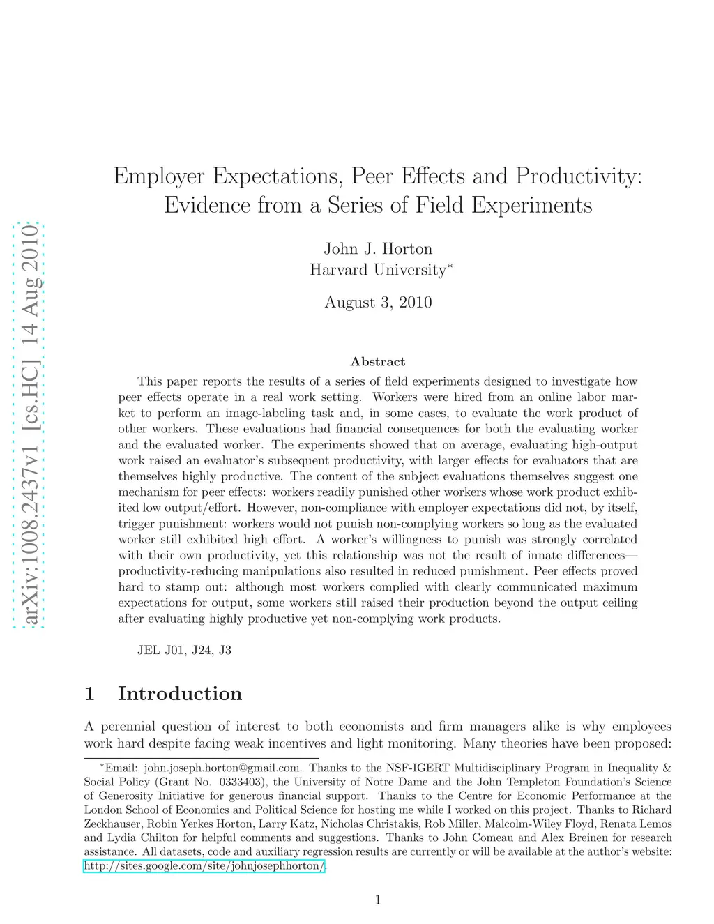 Employer Expectations, Peer Effects and Productivity: Evidence from a
