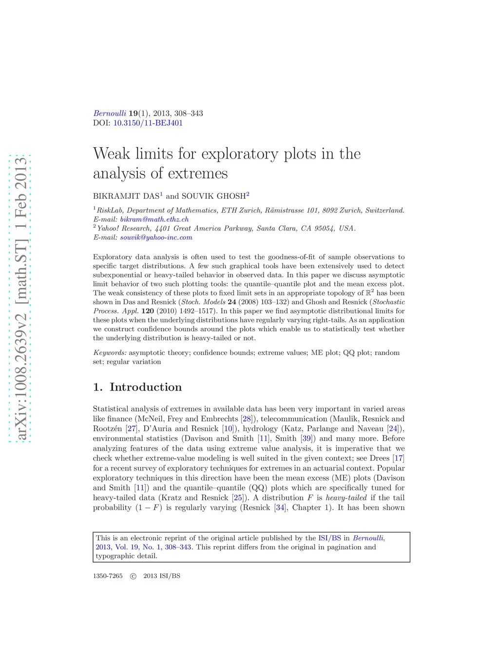 Exploratory data analysis is often used to test the goodness-of-fit of sample observations to specific target distributions. A few such graphical tools have been extensively used to detect subexponential or heavy-tailed behavior in observed data. In this paper we discuss asymptotic limit behavior of two such plotting tools: the quantile-quantile plot and the mean excess plot. The weak consistency of these plots to fixed limit sets in an appropriate topology of has been shown in Das and Resnick (Stoch. Models 24 (2008) 103-132) and Ghosh and Resnick (Stochastic Process. Appl. 120 (2010) 1492-1517). In this paper we find asymptotic distributional limits for these plots when the underlying distributions have regularly varying right-tails. As an application we construct confidence bounds around the plots which enable us to statistically test whether the underlying distribution is heavy-tailed or not.