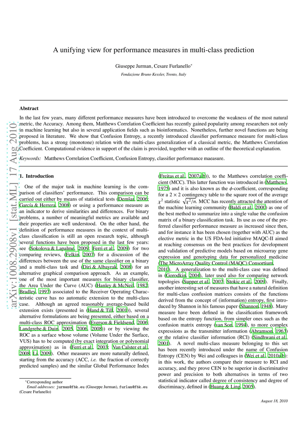 A unifying view for performance measures in multi-class prediction