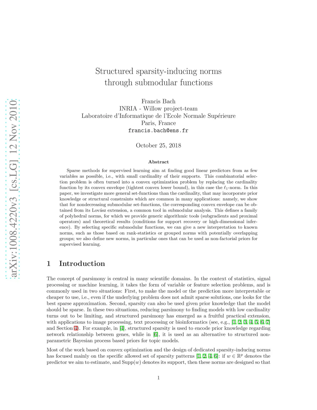 Sparse methods for supervised learning aim at finding good linear predictors from as few variables as possible, i.e., with small cardinality of their supports. This combinatorial selection problem is often turned into a convex optimization problem by replacing the cardinality function by its convex envelope (tightest convex lower bound), in this case the L1-norm. In this paper, we investigate more general set-functions than the cardinality, that may incorporate prior knowledge or structural constraints which are common in many applications: namely, we show that for nondecreasing submodular set-functions, the corresponding convex envelope can be obtained from its \lova extension, a common tool in submodular analysis. This defines a family of polyhedral norms, for which we provide generic algorithmic tools (subgradients and proximal operators) and theoretical results (conditions for support recovery or high-dimensional inference). By selecting specific submodular functions, we can give a new interpretation to known norms, such as those based on rank-statistics or grouped norms with potentially overlapping groups; we also define new norms, in particular ones that can be used as non-factorial priors for supervised learning.