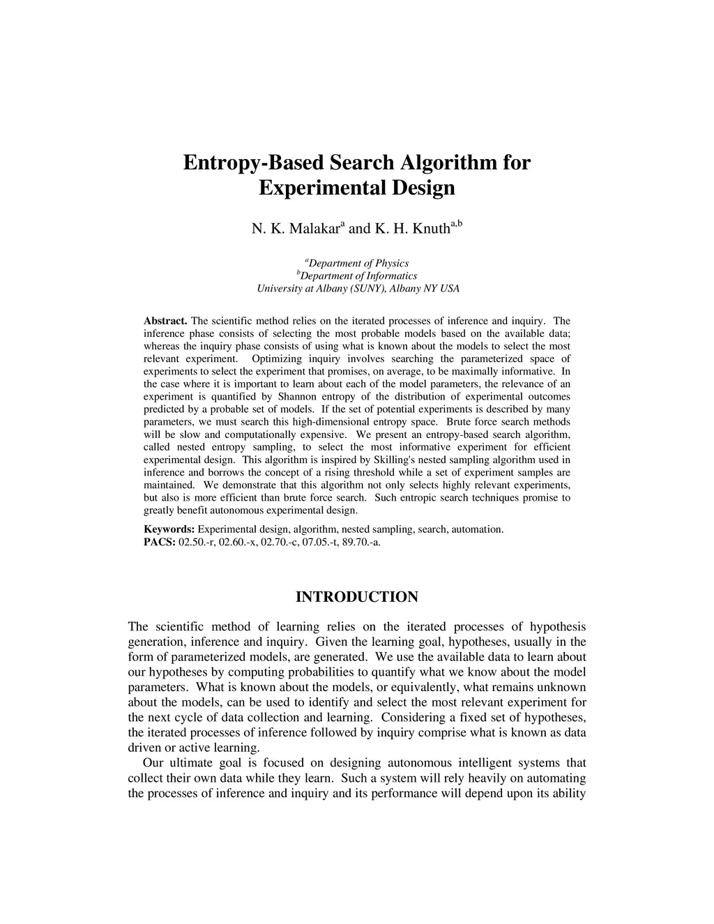 Entropy-Based Search Algorithm for Experimental Design