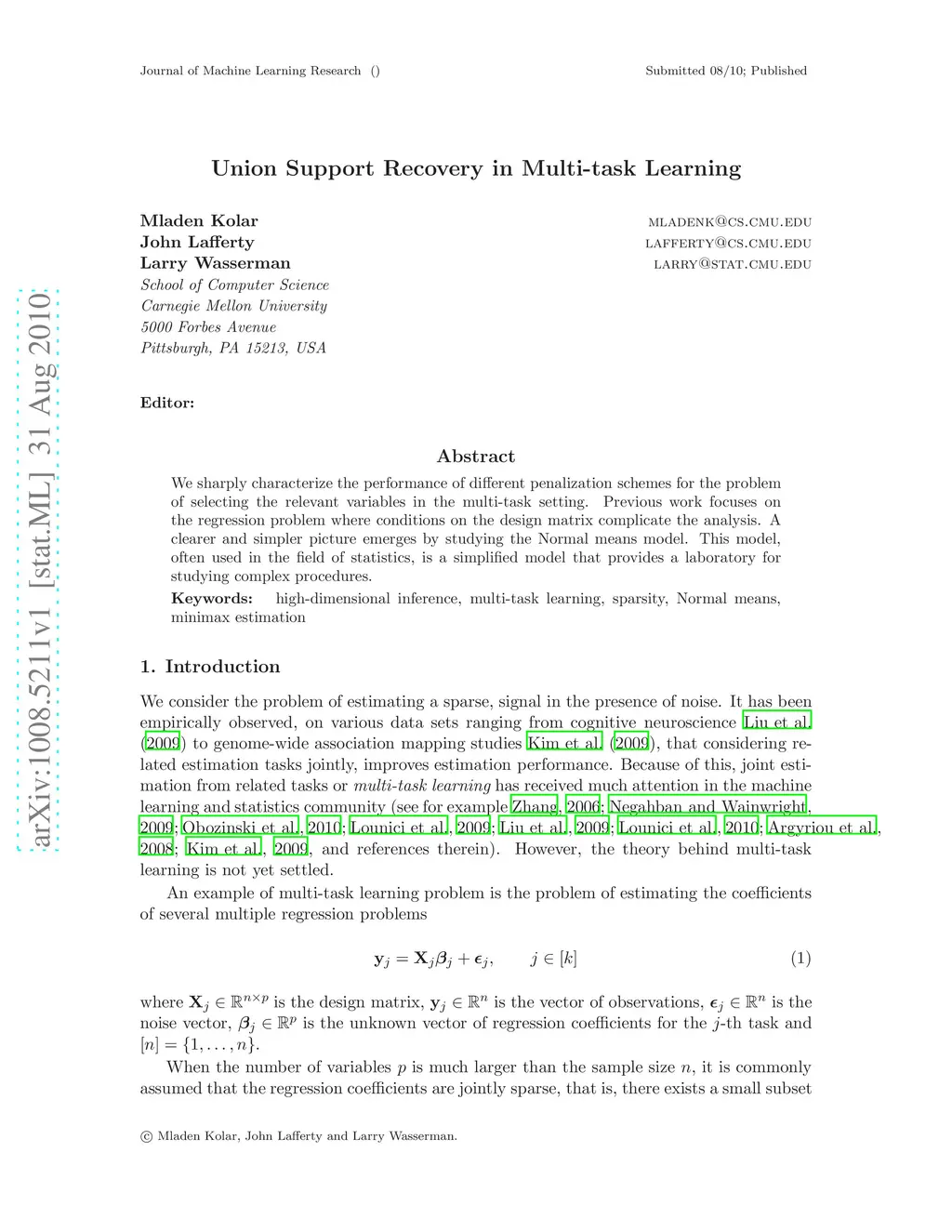 We sharply characterize the performance of different penalization schemes for the problem of selecting the relevant variables in the multi-task setting. Previous work focuses on the regression problem where conditions on the design matrix complicate the analysis. A clearer and simpler picture emerges by studying the Normal means model. This model, often used in the field of statistics, is a simplified model that provides a laboratory for studying complex procedures.