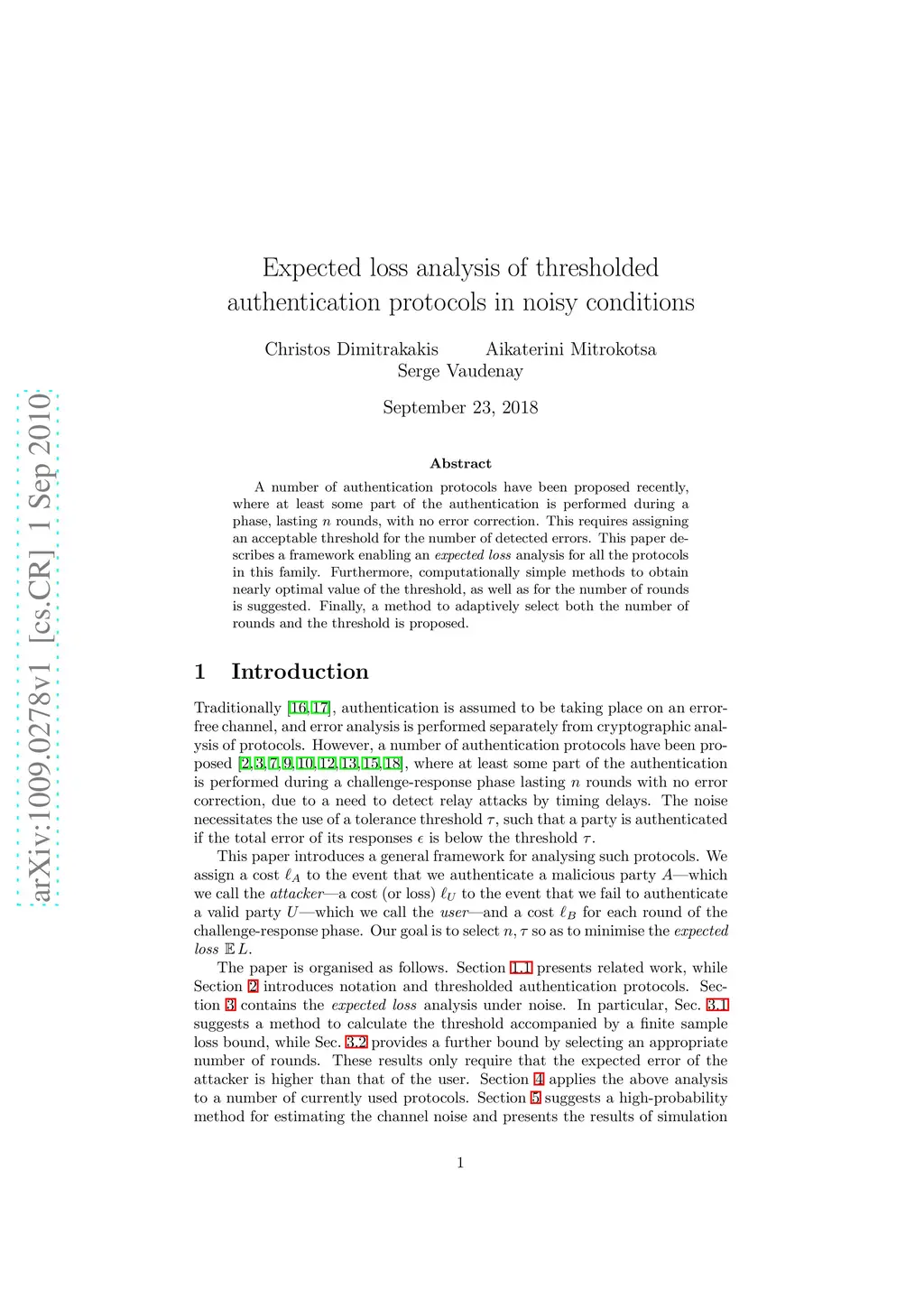 A number of authentication protocols have been proposed recently, where at least some part of the authentication is performed during a phase, lasting rounds, with no error correction. This requires assigning an acceptable threshold for the number of detected errors. This paper describes a framework enabling an expected loss analysis for all the protocols in this family. Furthermore, computationally simple methods to obtain nearly optimal value of the threshold, as well as for the number of rounds is suggested. Finally, a method to adaptively select both the number of rounds and the threshold is proposed.