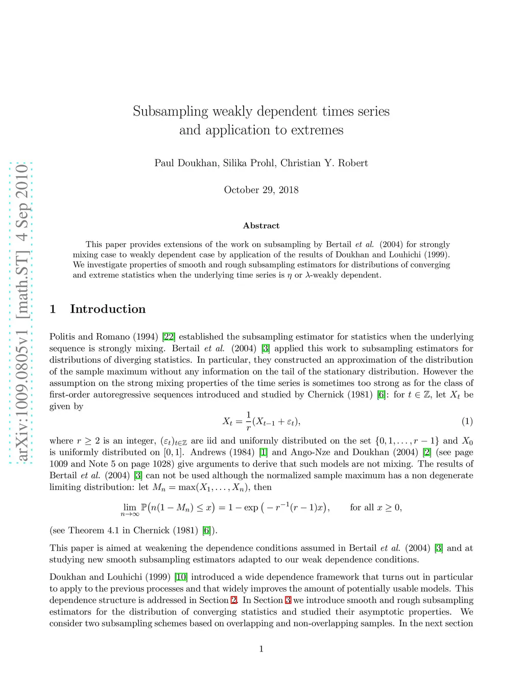 This paper provides extensions of the work on subsampling by Bertail et al. (2004) for strongly mixing case to weakly dependent case by application of the results of Doukhan and Louhichi (1999). We investigate properties of smooth and rough subsampling estimators for distributions of converging and extreme statistics when the underlying time series is {\eta} or {\lambda}-weakly dependent.