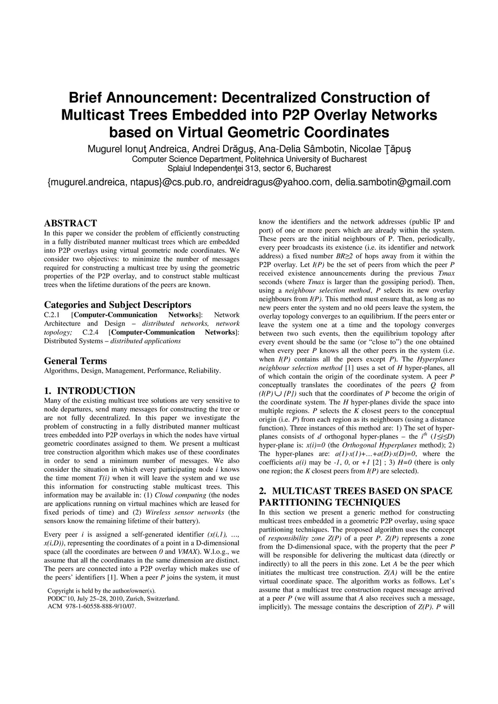 Brief Announcement: Decentralized Construction of Multicast Trees
