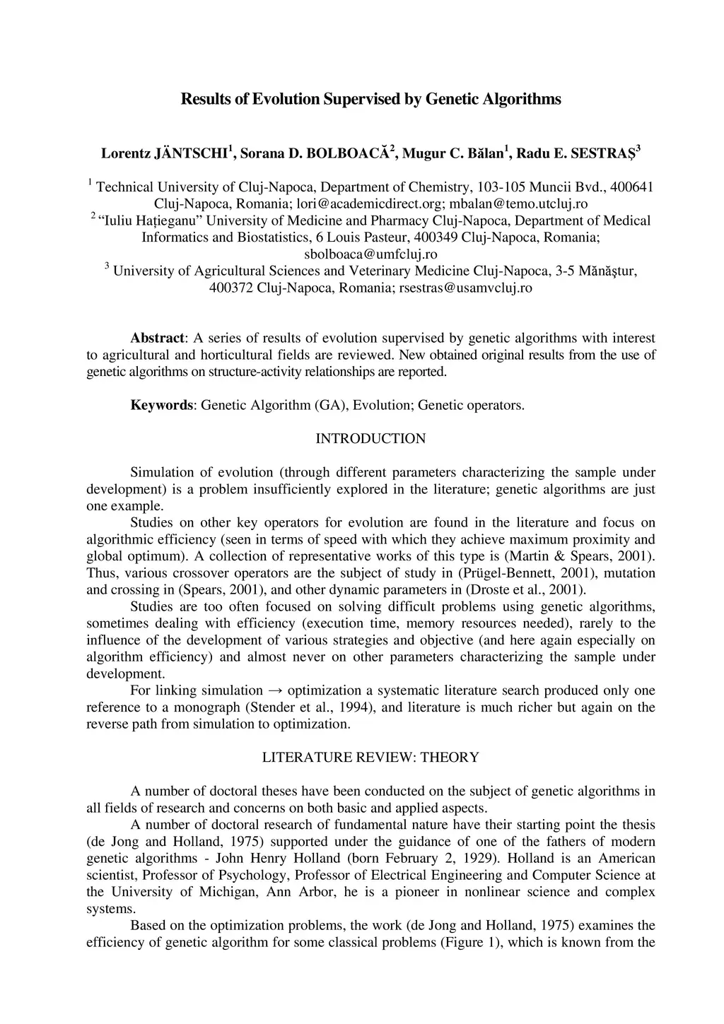 A series of results of evolution supervised by genetic algorithms with interest to agricultural and horticultural fields are reviewed. New obtained original results from the use of genetic algorithms on structure-activity relationships are reported.