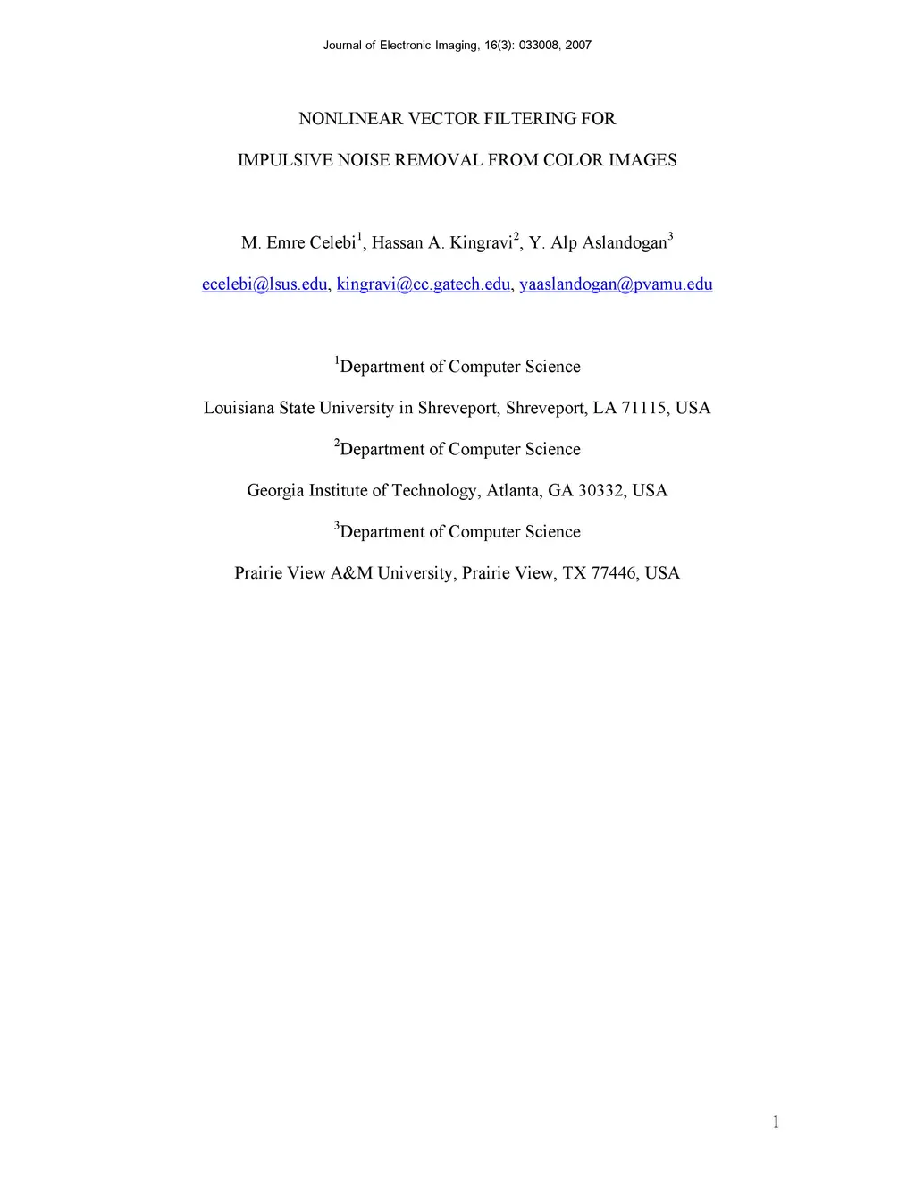 Nonlinear Vector Filtering for Impulsive Noise Removal from Color Images