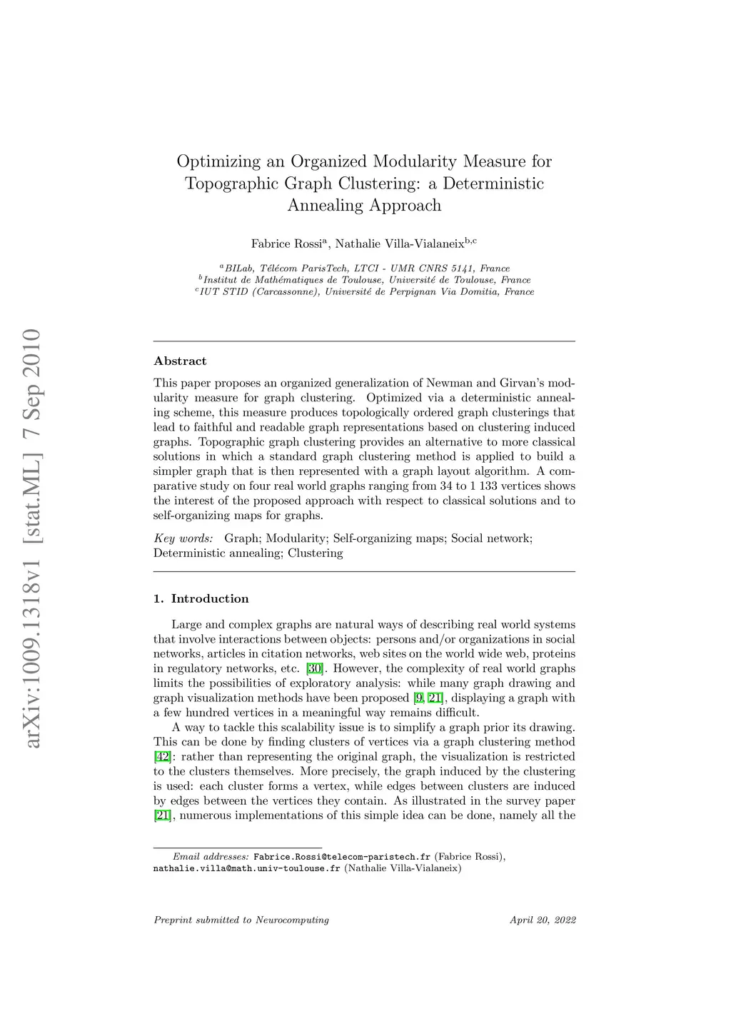 Optimizing an Organized Modularity Measure for Topographic Graph