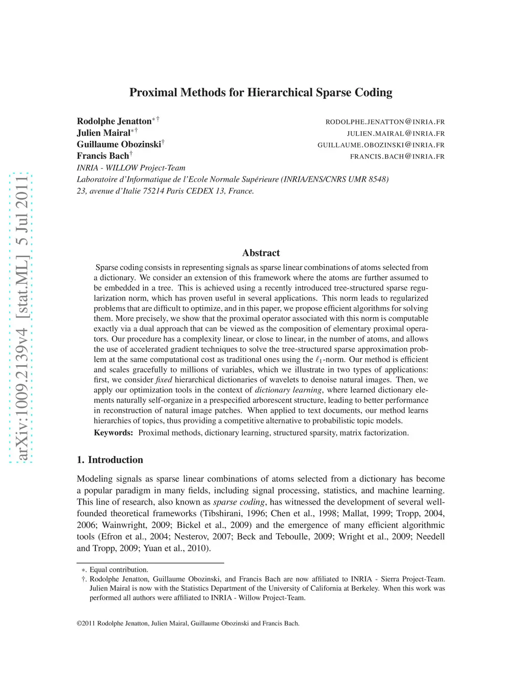Proximal Methods for Hierarchical Sparse Coding