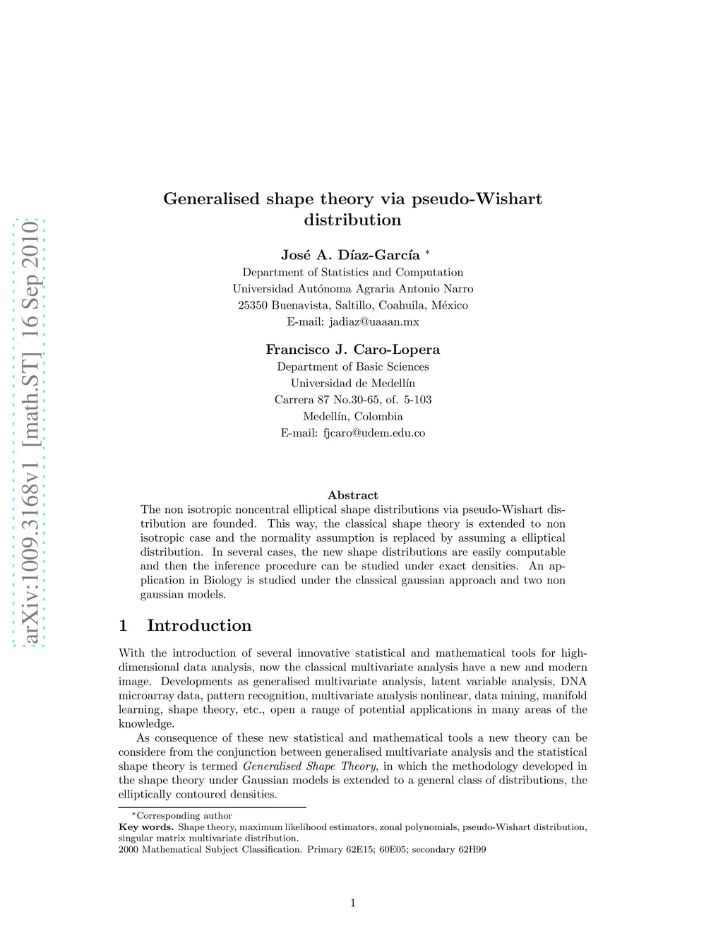 Generalised shape theory via pseudo-Wishart distribution