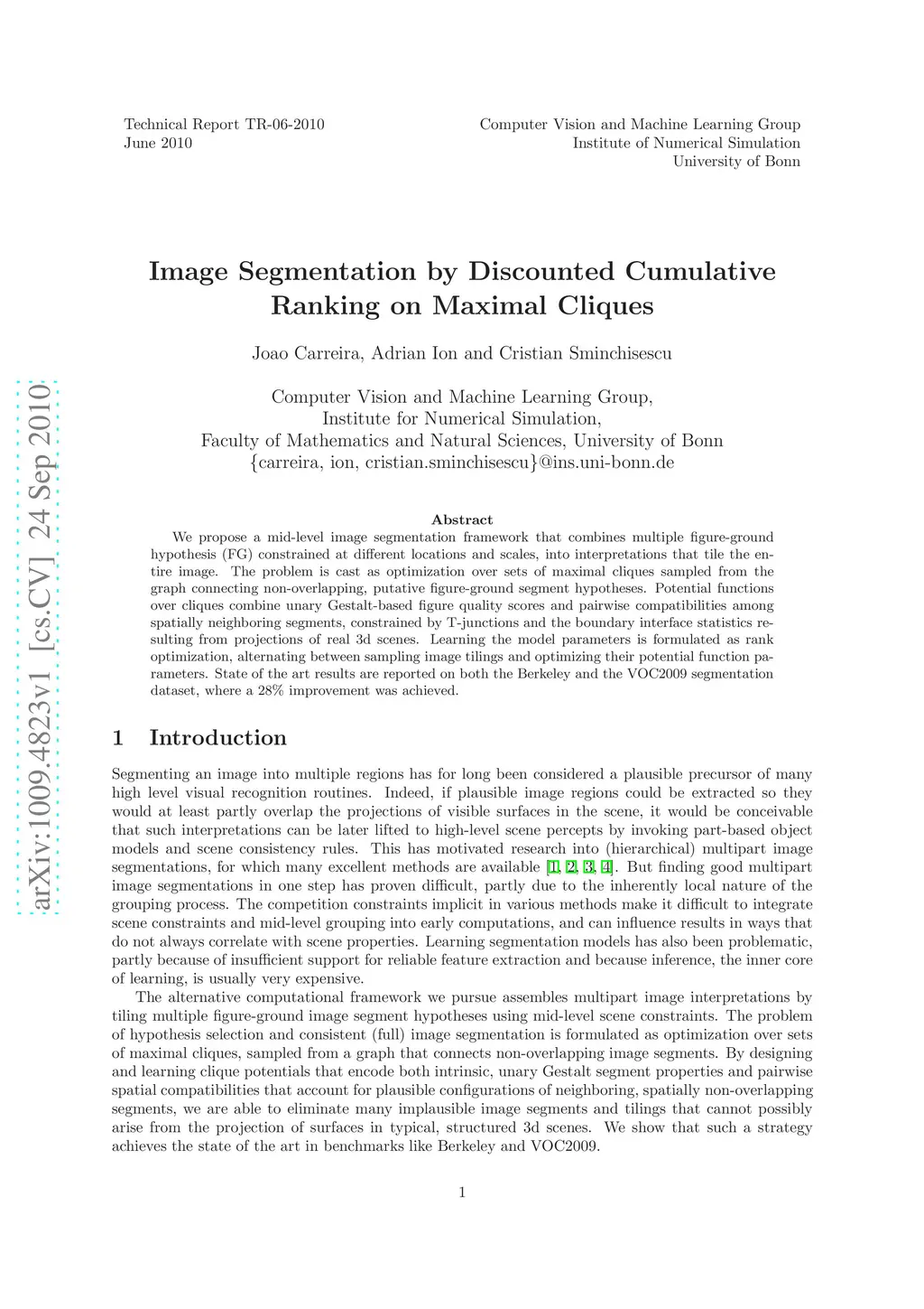 Image Segmentation by Discounted Cumulative Ranking on Maximal Cliques