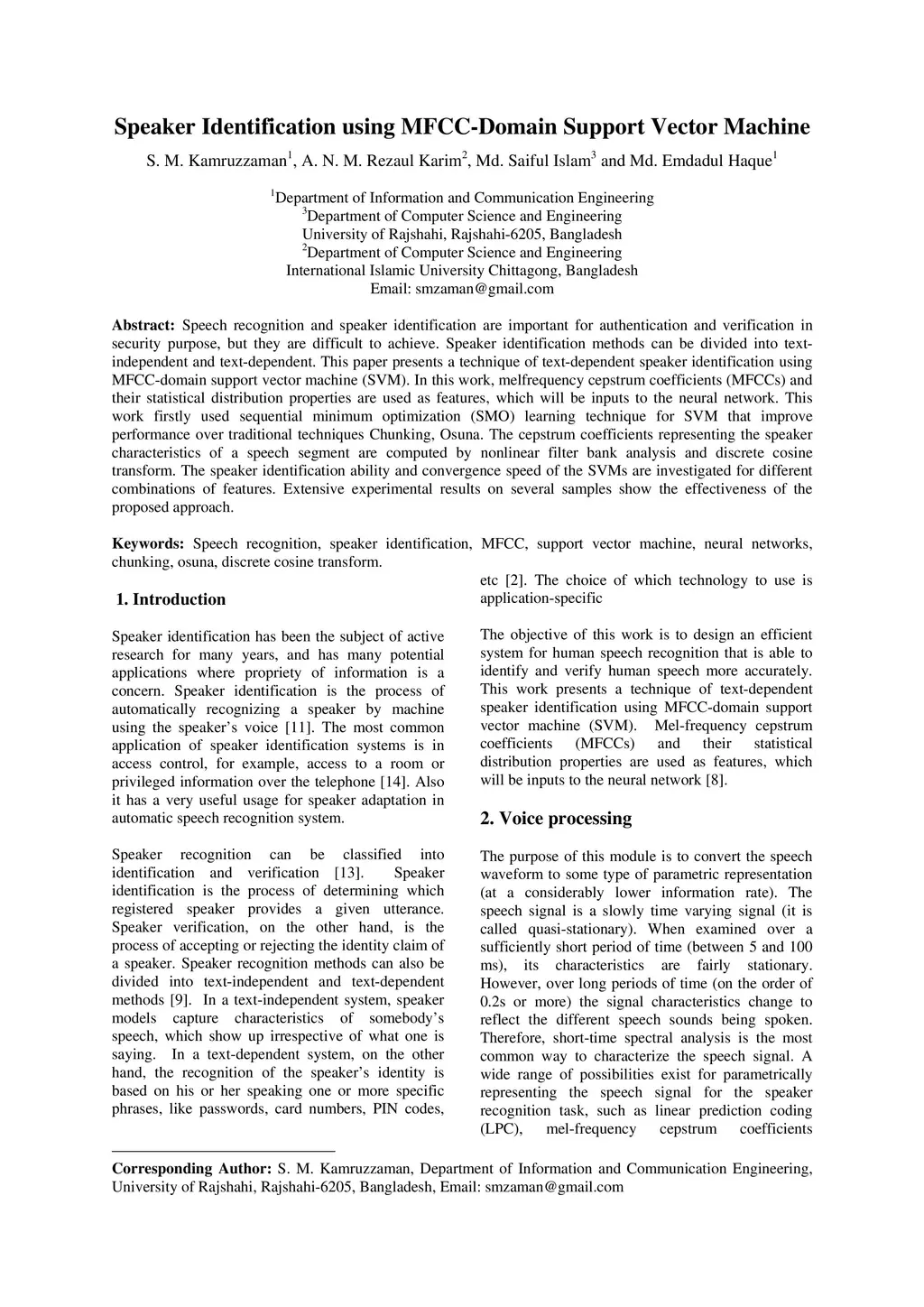 Speaker Identification using MFCC-Domain Support Vector Machine