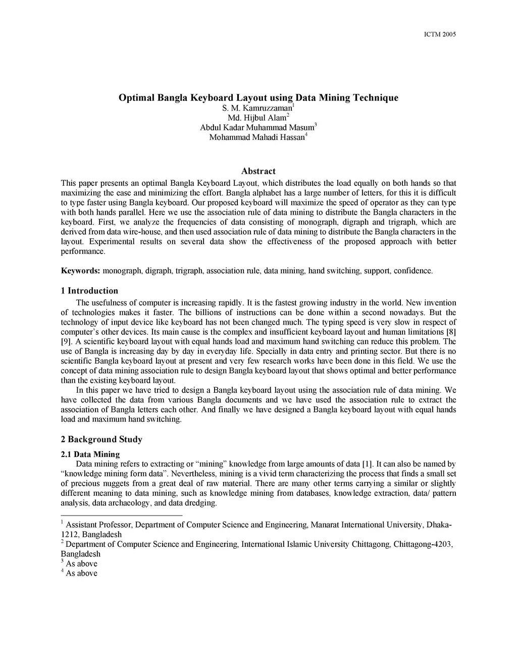Optimal Bangla Keyboard Layout using Data Mining Technique
