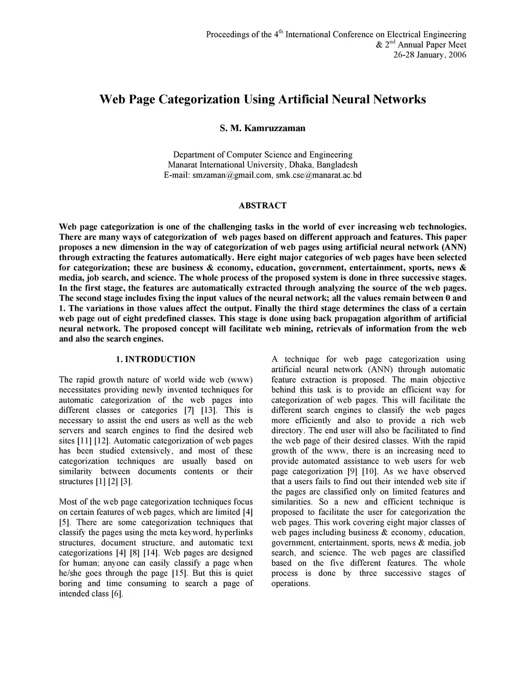 Web Page Categorization Using Artificial Neural Networks