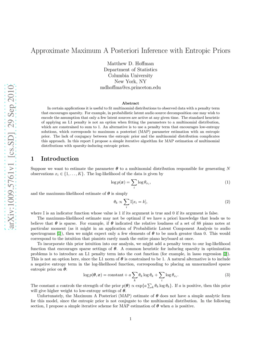 Approximate Maximum A Posteriori Inference with Entropic Priors