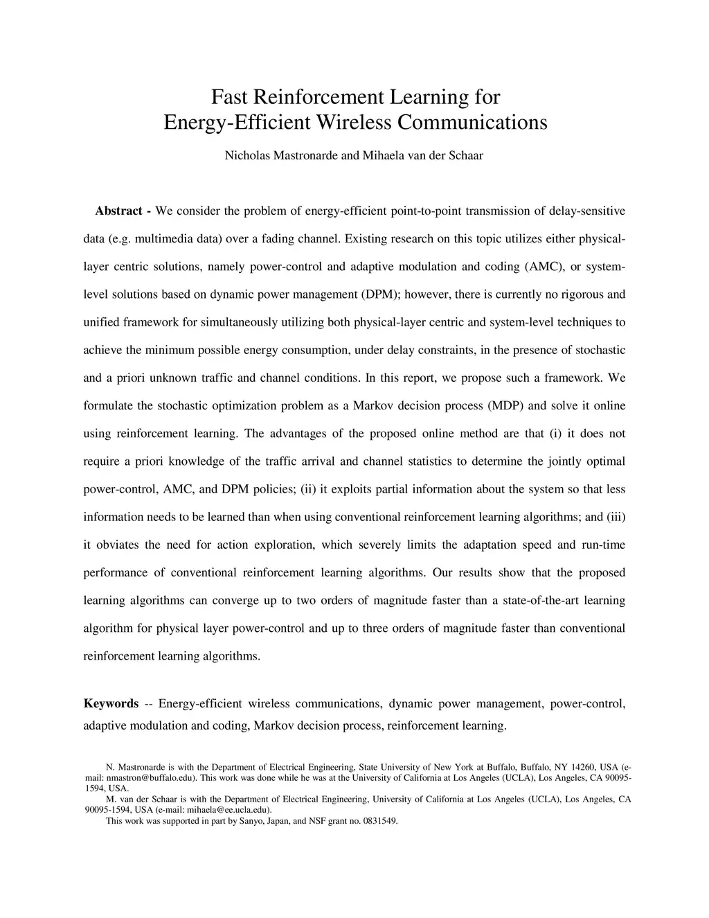 Fast Reinforcement Learning for Energy-Efficient Wireless Communications