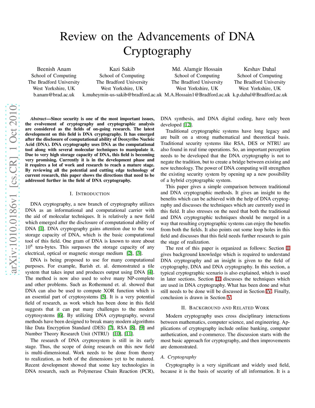 Review on the Advancements of DNA Cryptography