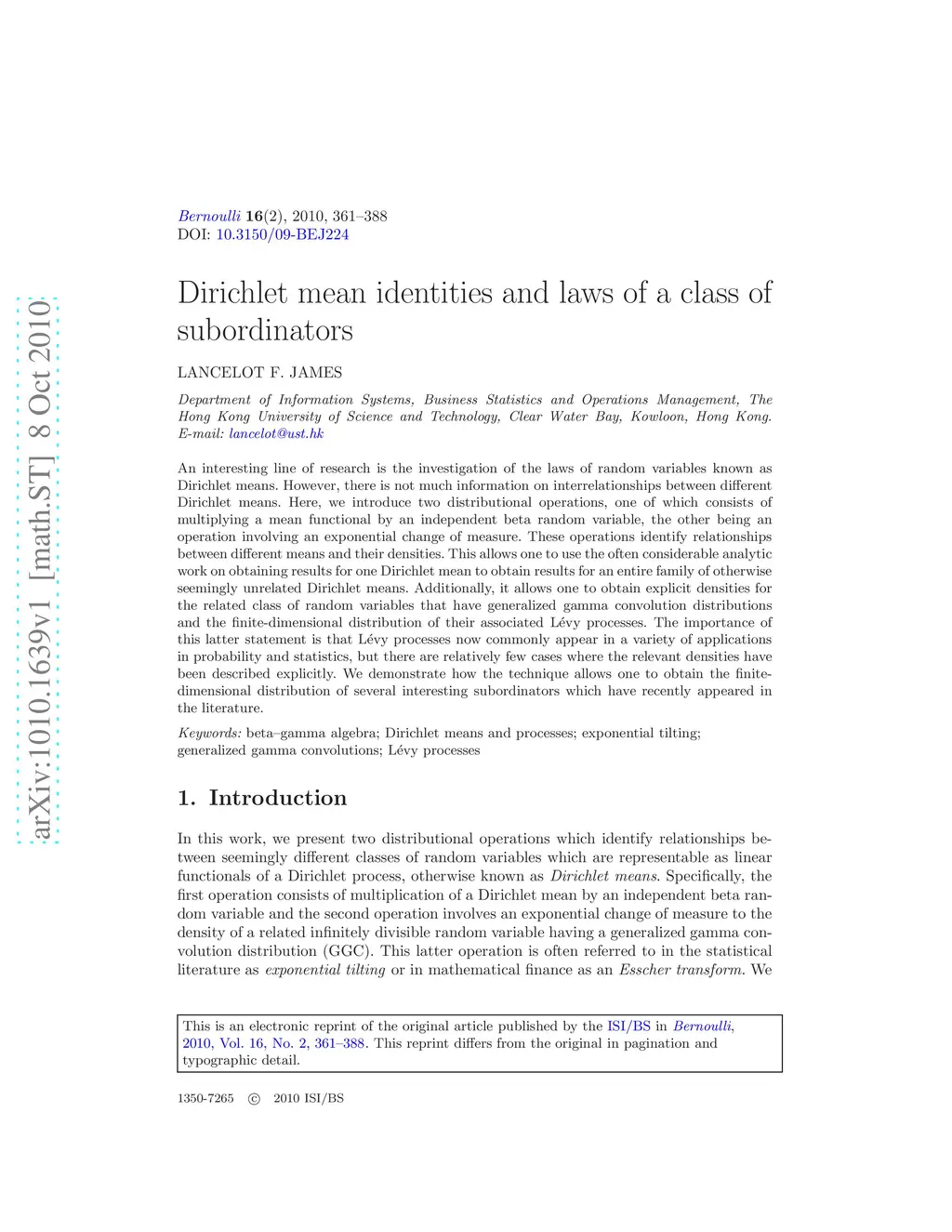 An interesting line of research is the investigation of the laws of random variables known as Dirichlet means. However, there is not much information on interrelationships between different Dirichlet means. Here, we introduce two distributional operations, one of which consists of multiplying a mean functional by an independent beta random variable, the other being an operation involving an exponential change of measure. These operations identify relationships between different means and their densities. This allows one to use the often considerable analytic work on obtaining results for one Dirichlet mean to obtain results for an entire family of otherwise seemingly unrelated Dirichlet means. Additionally, it allows one to obtain explicit densities for the related class of random variables that have generalized gamma convolution distributions and the finite-dimensional distribution of their associated L\'{e}vy processes. The importance of this latter statement is that L\'{e}vy processes now commonly appear in a variety of applications in probability and statistics, but there are relatively few cases where the relevant densities have been described explicitly. We demonstrate how the technique allows one to obtain the finite-dimensional distribution of several interesting subordinators which have recently appeared in the literature.