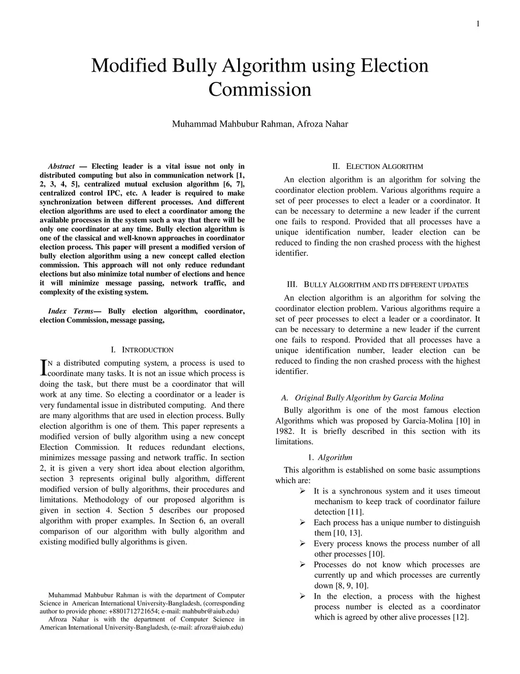Modified Bully Algorithm using Election Commission