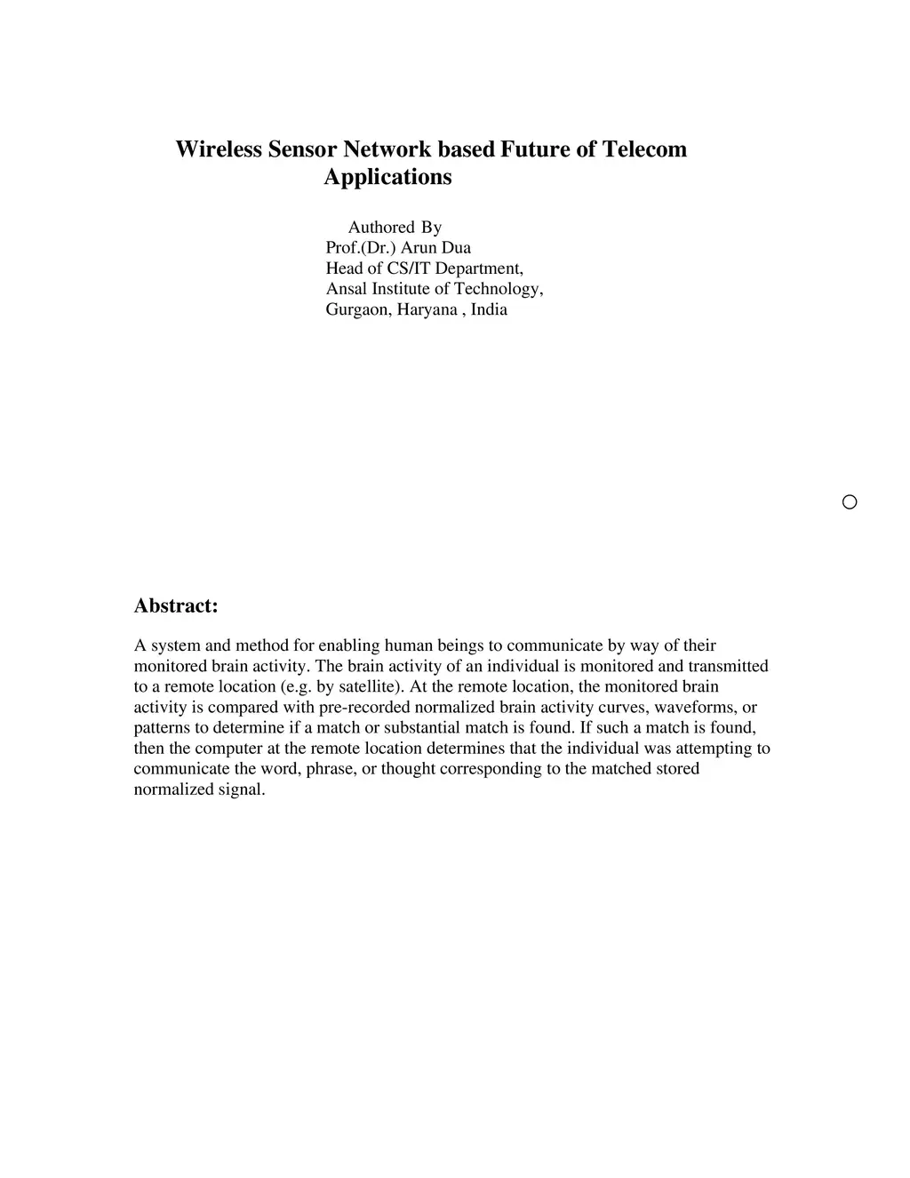 Wireless Sensor Network based Future of Telecom Applications