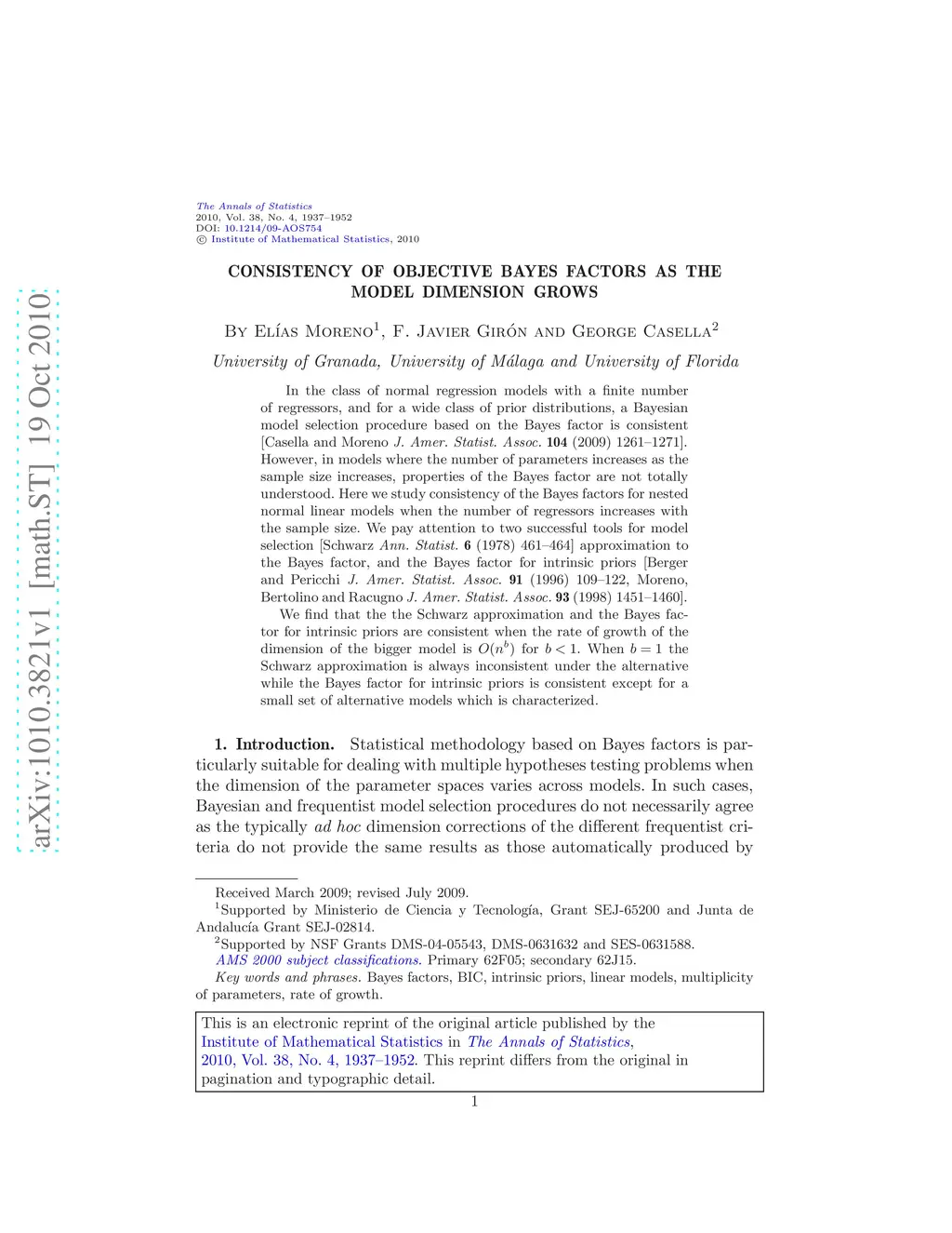 In the class of normal regression models with a finite number of regressors, and for a wide class of prior distributions, a Bayesian model selection procedure based on the Bayes factor is consistent [Casella and Moreno J. Amer. Statist. Assoc. 104 (2009) 1261--1271]. However, in models where the number of parameters increases as the sample size increases, properties of the Bayes factor are not totally understood. Here we study consistency of the Bayes factors for nested normal linear models when the number of regressors increases with the sample size. We pay attention to two successful tools for model selection [Schwarz Ann. Statist. 6 (1978) 461--464] approximation to the Bayes factor, and the Bayes factor for intrinsic priors [Berger and Pericchi J. Amer. Statist. Assoc. 91 (1996) 109--122, Moreno, Bertolino and Racugno J. Amer. Statist. Assoc. 93 (1998) 1451--1460]. We find that the the Schwarz approximation and the Bayes factor for intrinsic priors are consistent when the rate of growth of the dimension of the bigger model is for . When the Schwarz approximation is always inconsistent under the alternative while the Bayes factor for intrinsic priors is consistent except for a small set of alternative models which is characterized.