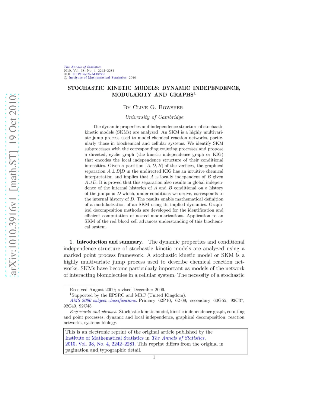 Stochastic kinetic models: Dynamic independence, modularity and graphs