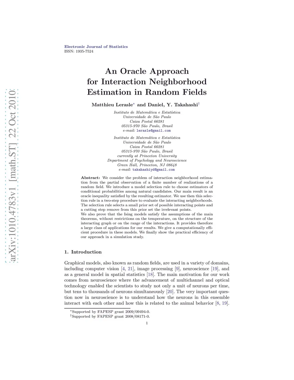 An Oracle Approach for Interaction Neighborhood Estimation in Random