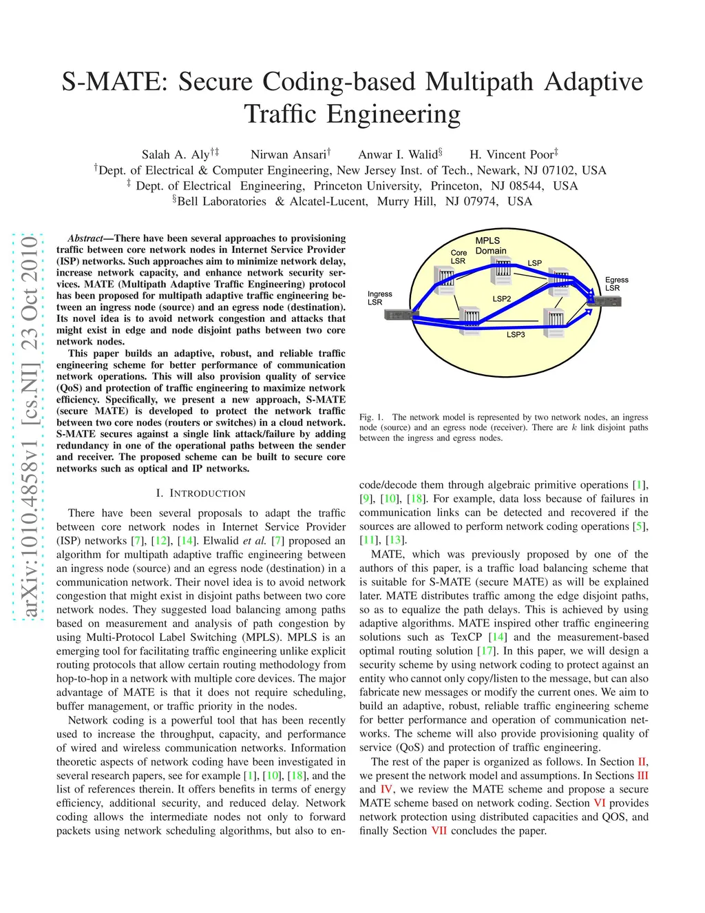 S-MATE: Secure Coding-based Multipath Adaptive Traffic Engineering