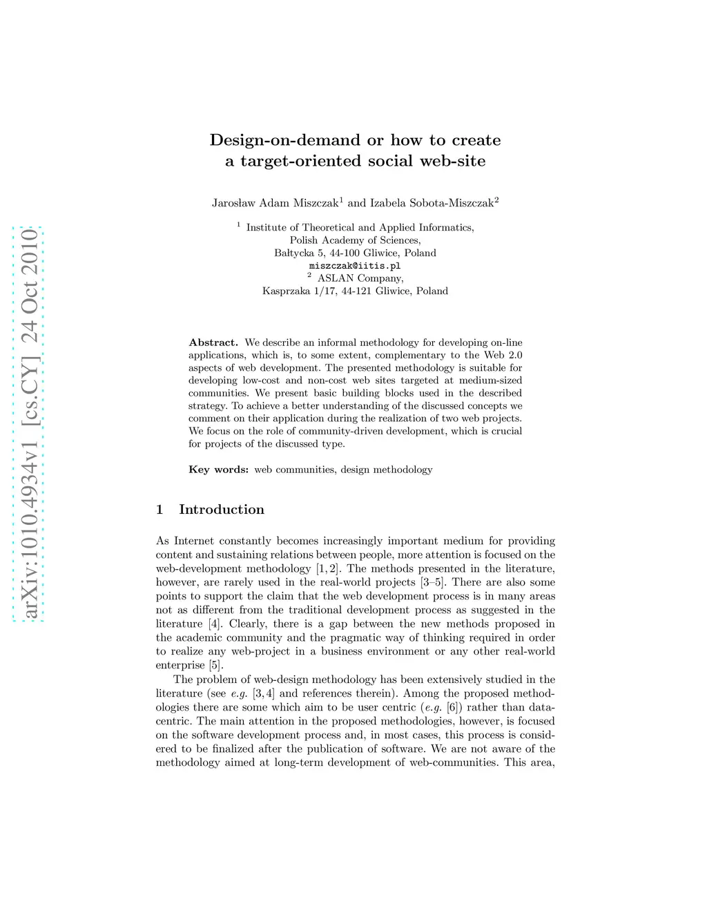 We describe an informal methodology for developing on-line applications, which is, to some extent, complementary to the Web 2.0 aspects of web development. The presented methodology is suitable for developing low-cost and non-cost web sites targeted at medium-sized communities. We present basic building blocks used in the described strategy. To achieve a better understanding of the discussed concepts we comment on their application during the realization of two web projects. We focus on the role of community-driven development, which is crucial for projects of the discussed type.