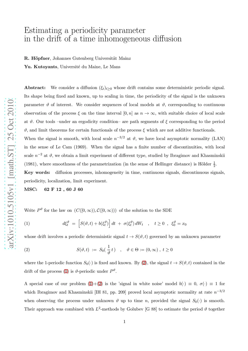 Estimating a periodicity parameter in the drift of a time inhomogeneous