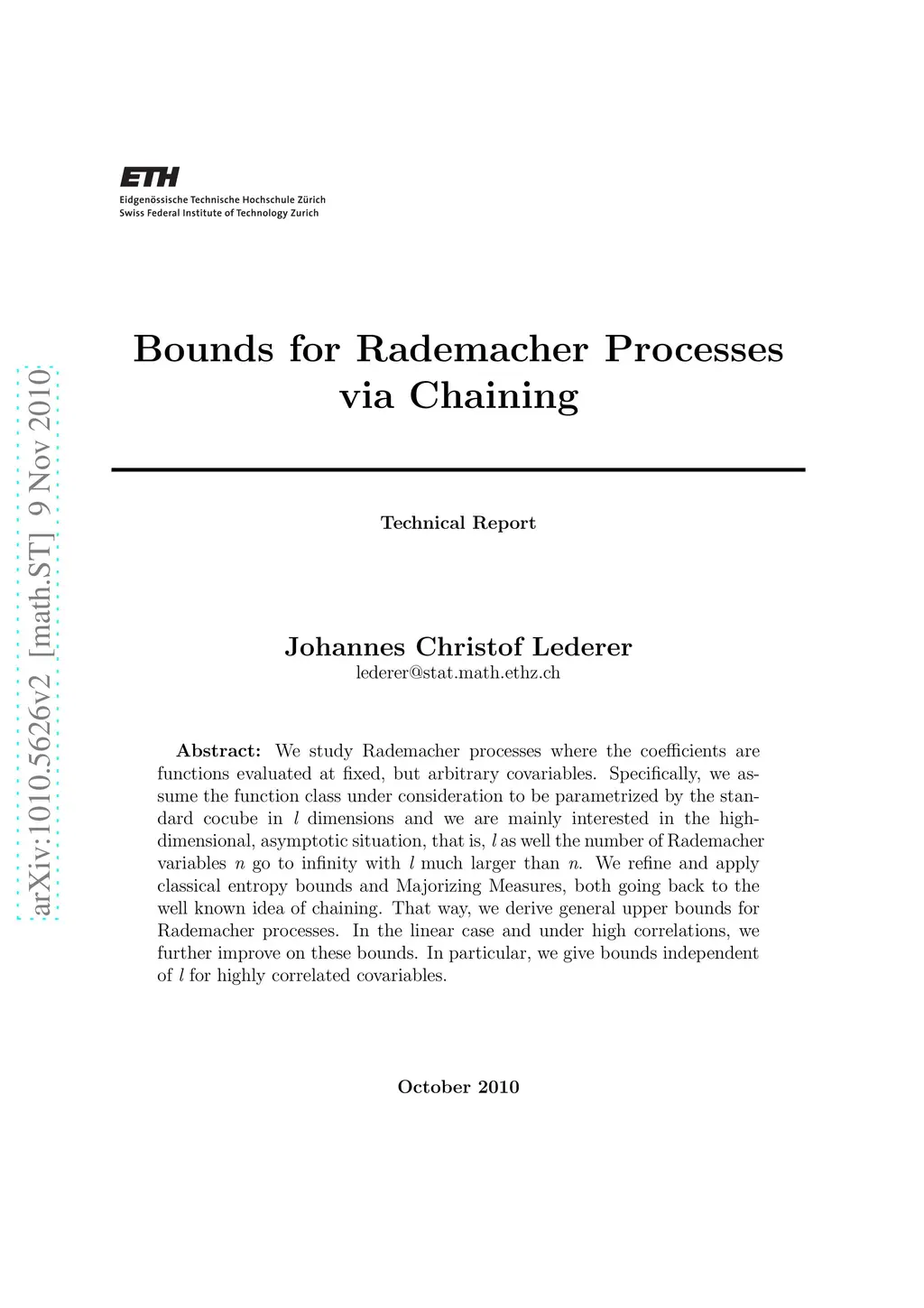 We study Rademacher processes where the coefficients are functions evaluated at fixed, but arbitrary covariables. Specifically, we assume the function class under consideration to be parametrized by the standard cocube in l dimensions and we are mainly interested in the high-dimensional, asymptotic situation, that is, l as well the number of Rademacher variables n go to infinity with l much larger than n. We refine and apply classical entropy bounds and Majorizing Measures, both going back to the well known idea of chaining. That way, we derive general upper bounds for Rademacher processes. In the linear case and under high correlations, we further improve on these bounds. In particular, we give bounds independent of l for highly correlated covariables.