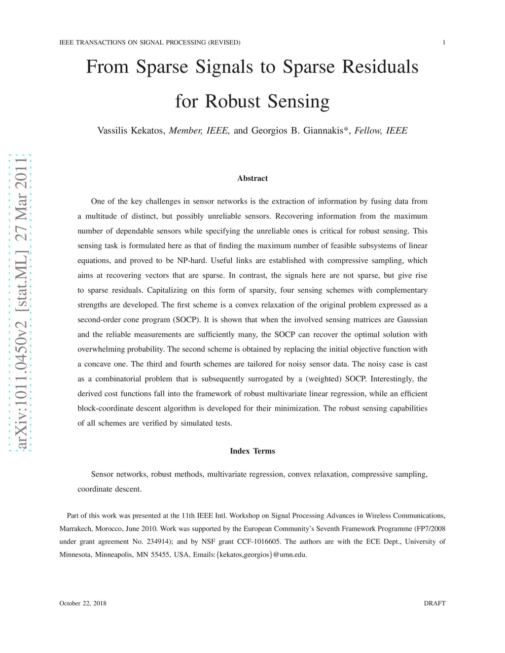 From Sparse Signals to Sparse Residuals for Robust Sensing